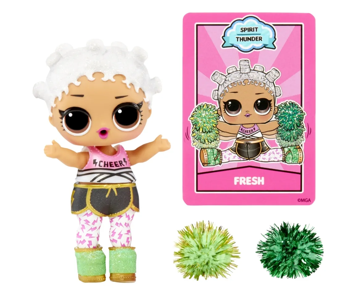 - 8 SURPRISES: (1) L.O.L. Surprise! All Star Sports™ Gymnastics Doll; (2) Outfit; (3) Bottle; (4) Medal; (5) Shoes; (6) Accessory; (7) Accessory; (8) Exclusive Trading Card