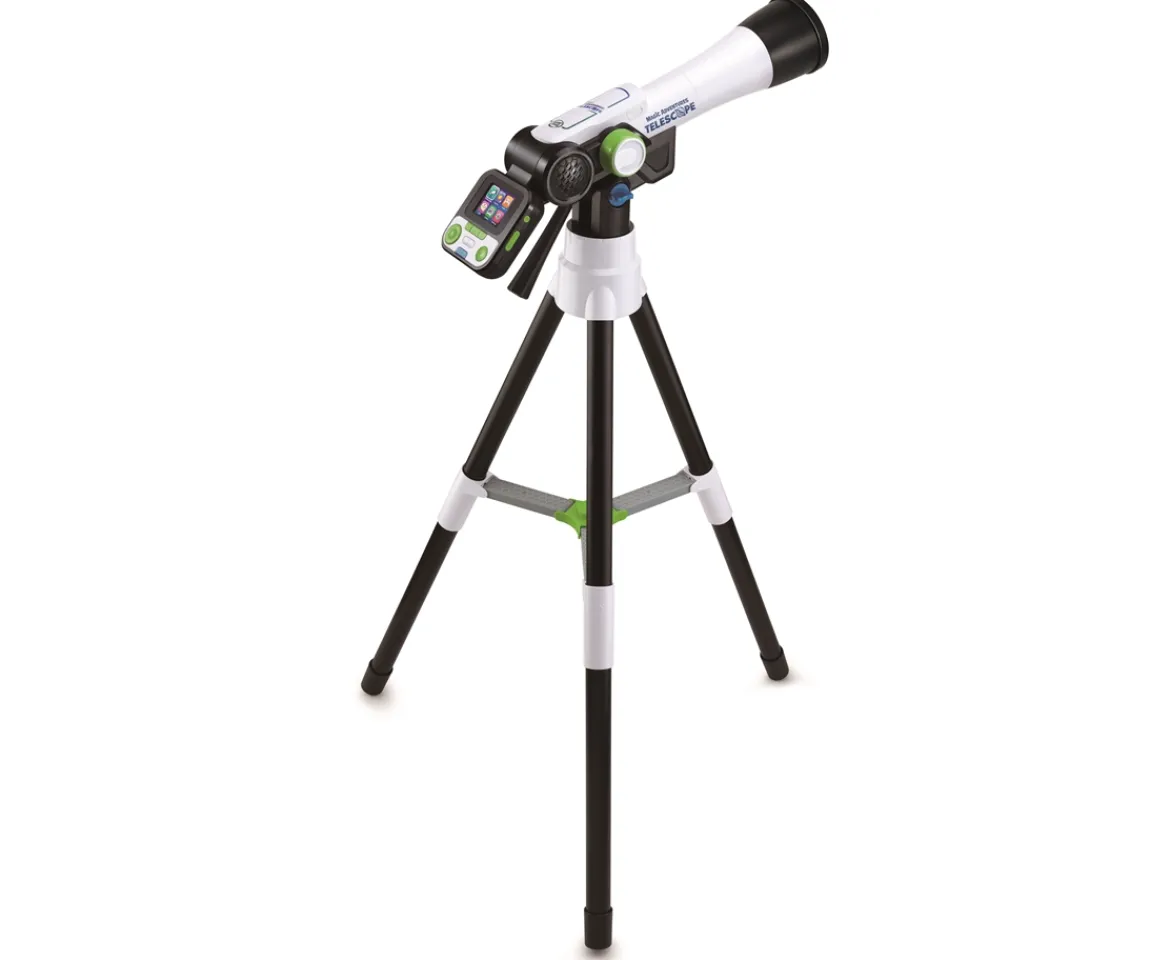 Budding astronomers can travel the universe and see everything in it with the LeapFrog®Magic Adventures™ Telescope Using the screen children can delve into the Cosmos, learning about 6 space categories. Explore the solar system, the moon, star life cycles, constellations and space discoveries with the built in Images and videos provided by NASA. Have fun helping Mission Control fix planets in our solar system while dodging hazards and learning cool facts in the fun Adventure Game. You can also use this real telescope to focus on animals and nature in the day and the Moon and stars at night. Capture and share up to 100 photos and take thousands more using the memory SD Card slot.Included are also 20 out of this world cosmic cards. New batteries recommended for regular use.