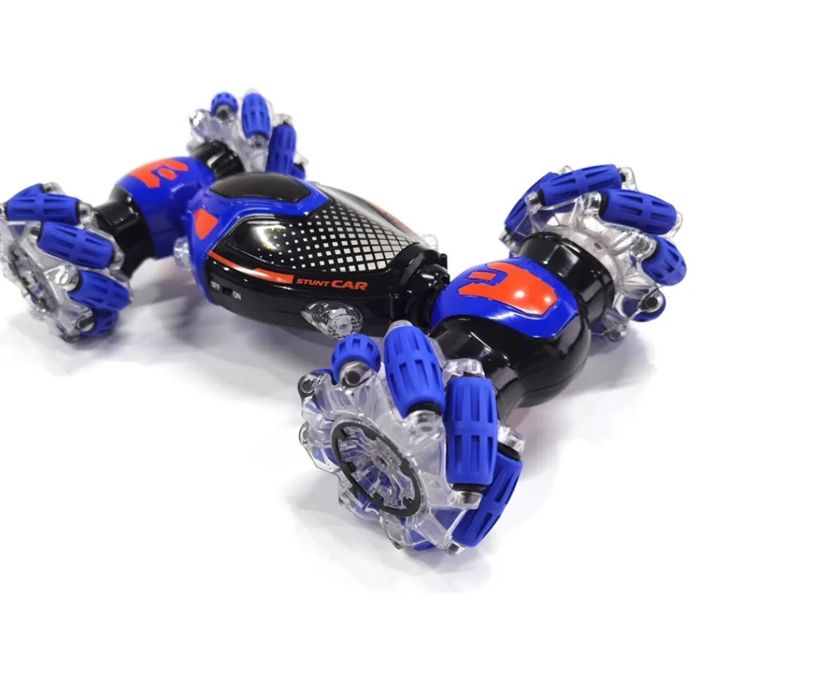Get ready for non-stop action with the Light Up Stunt Radio Control Car! This dynamic four-wheel drive stunt car offers thrilling light and sound effects, perfect for night-time fun.With its ability to move forward, backward, turn left or right, and even perform side-walking stunts, it’s a showstopper on any terrain. The car can also rotate 360 degrees, adding to the excitement. Plus, the remote control features a special button that lets you straighten or twist the car’s body, giving you ultimate control over your stunts. Ideal for kids and stunt car enthusiasts alike!