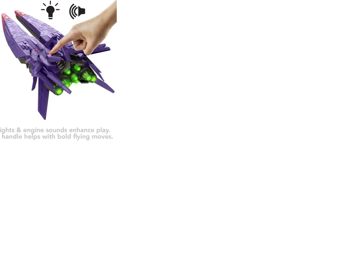 - Recreate scenes from the thrilling animated adventure with this 20-inch long spacecraft. Use the handle on top to manage intense flying maneuvers. The bright green taillights and engine sounds make for realistic battle play!