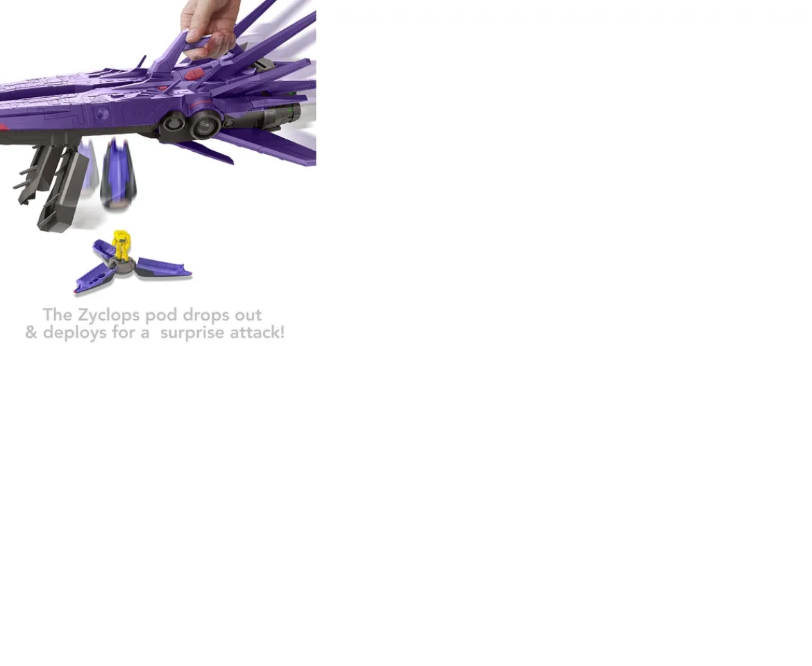 - Fly high and deploy the Zyclops pod! When it hits the ground, the door pops open and the Zyclops robot figure appears, ready to make a surprise attack! Turn the ship over to reload.