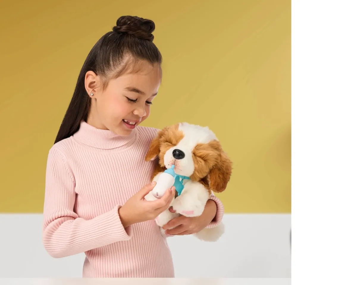 Little Live Pets My Really Real Puppy – Patches The Beagle, is the realest puppy you’ve ever seen! Patches looks and feels so real with the softest fur, sweetest blinking eyes, and reacts to your touch with over 60 sounds and reactions. Get to know your puppy by gently pressing his nose, and he will sniff or lick your hand. Pet Patches on his head or back and he will make happy sounds and blink his eyes. The more you pet him, the more excited he will get!Patches comes with a puppy bottle and loves to be fed – gently press the puppy bottle to his mouth and listen as he closes his eyes and makes cute feeding noises. Then lay him down on his side for a nap – he will sense his position and fall asleep. My Really Real Puppy comes with an adorable puppy carrier that transforms into a doggy bed, so you can carry him with you anywhere you go! Once your child and Patches are acquainted, be sure to fill in your puppy’s adoption certificate, and write your puppy’s name on its very own name tag!