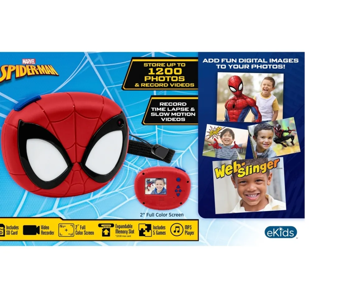 The Marvel Spider-Man Interactive Digital Camera makes a great gift for any little superhero! Use the kid-friendly controls to capture images and videos with ease, and save it all to the included SD memory card.Plus, you can customise and decorate your images using over 25 built- in frames and ‘stickers’ inspired by Spiderman. Connect to your computer to transfer and share your favourite content too!