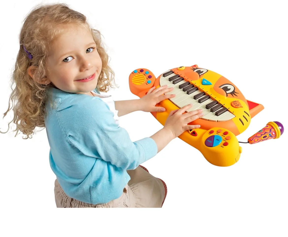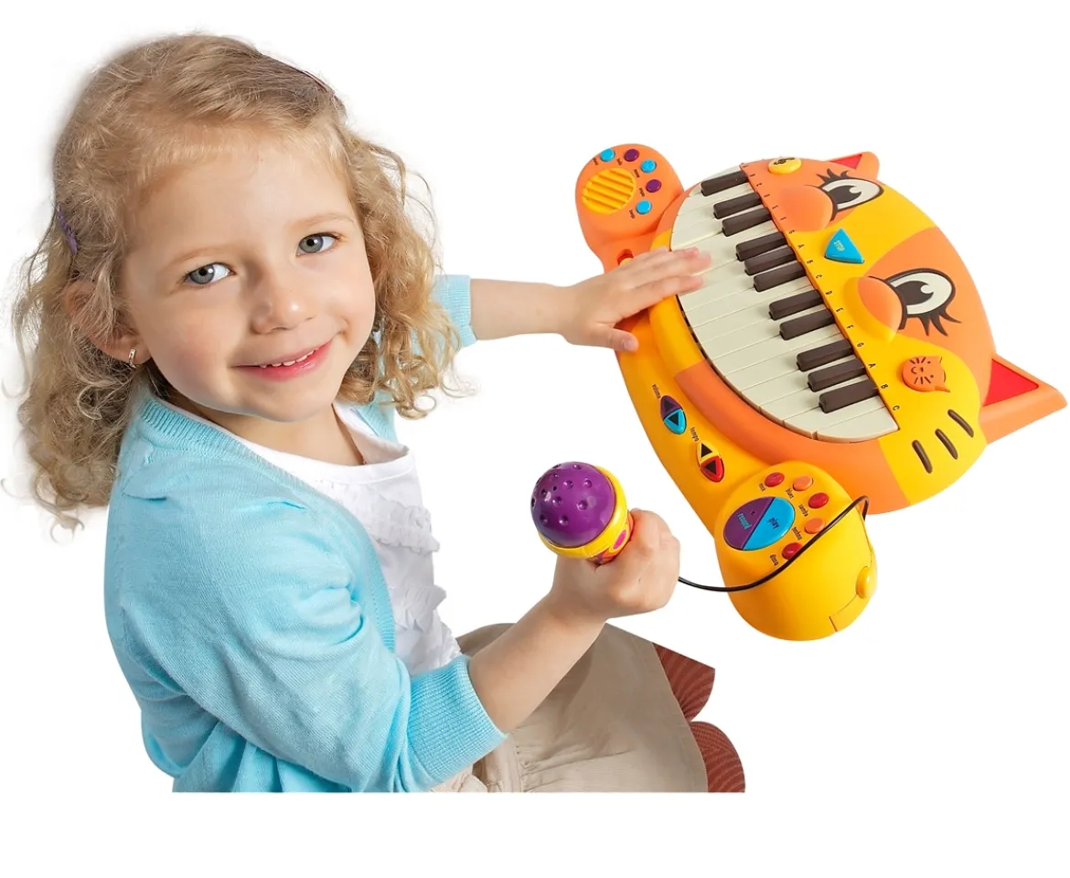 Put on a smile with the B. Meowsic Keyboard. This funny orange and yellow keyboard is suitable for the music stars of the future with microphone, sound alteration buttons and the piano keys. Sure to keep your little one entertained.