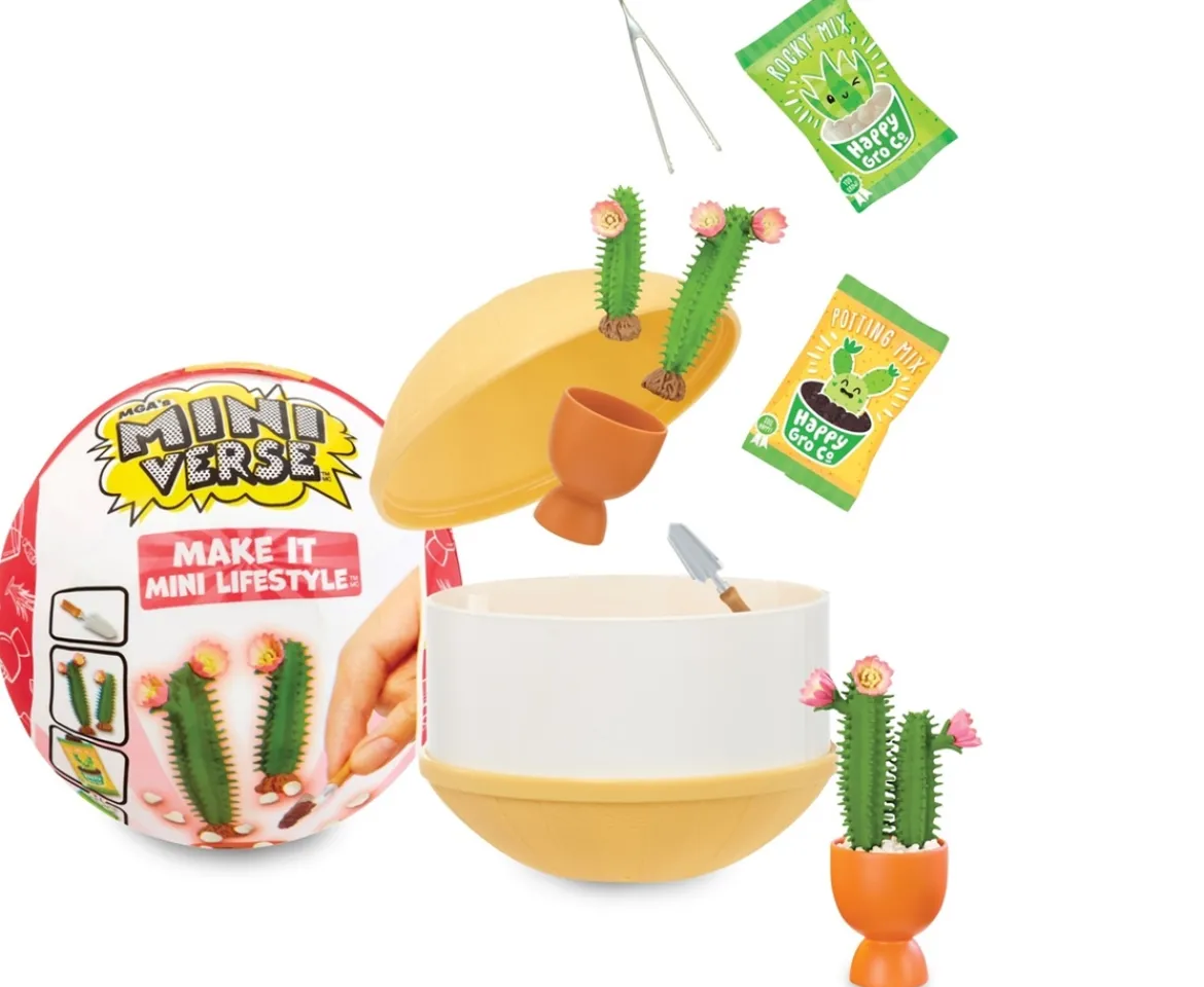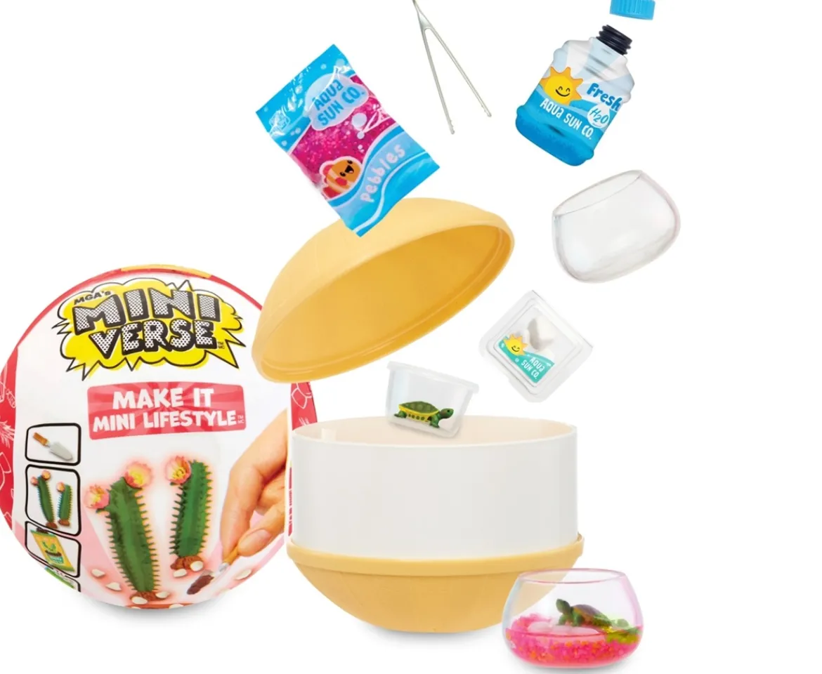 What do you do when you combine crafting with collectability? MGA’s Miniverse, Make It Mini Lifestyle™ is the only mini lifestyle collectible that you can make and display. From mini aquariums with mini fish, to a mini cactus with mini bags of soil, there are over 60+ unique Make It Mini lifestyle materials, packages, and accessories to collect and create your mini lifestyle and home items. Each package is a SURPRISE so you won’t know which mini you have until you unbox it! Compare the contents of your package with the included collector’s guide, to see which mini you have. Follow the instruction card on the back to prep your mini. Once you’ve finished creating your mini, set your replica in any UV light until the resin has hardened. Once it’s set, you’ve got a collectible ready for display!The fun doesn’t stop there! Your finished replica is not the only item worth collecting. The mini accessories and packaging are just as cute and collectible. From mini replica versions of plant pots, to aquarium gravel, and faux candle wax – there are over 60+ unique Make It Mini Lifestyle Series 1 replica items, packages, and accessories to collect and create your very own mini collectibles. Collect all the Make It Mini Lifestyle™ Series 1 minis! Visit the MGA’s Miniverse™ Store to shop and learn more about all the MAKE IT creations you can collect!DISCLAIMER: Ingredients are NOT edible.
