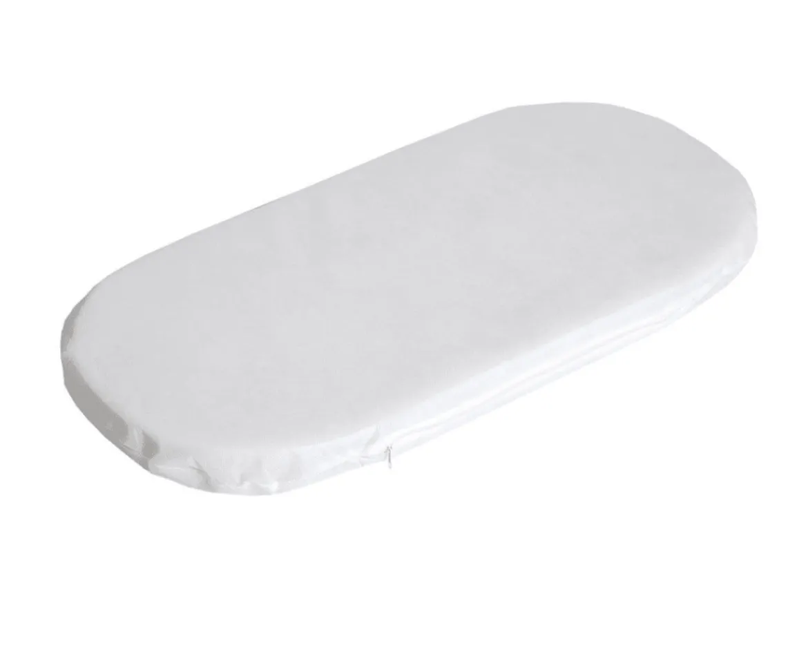 The Baby Elegance Eco moses basket mattress is made from a stong but comfortable eco fibre pad. It has a removable washable cover. It is full breathable and air permeable. This moses basket mattress size is 30cm wide x 66cm long.