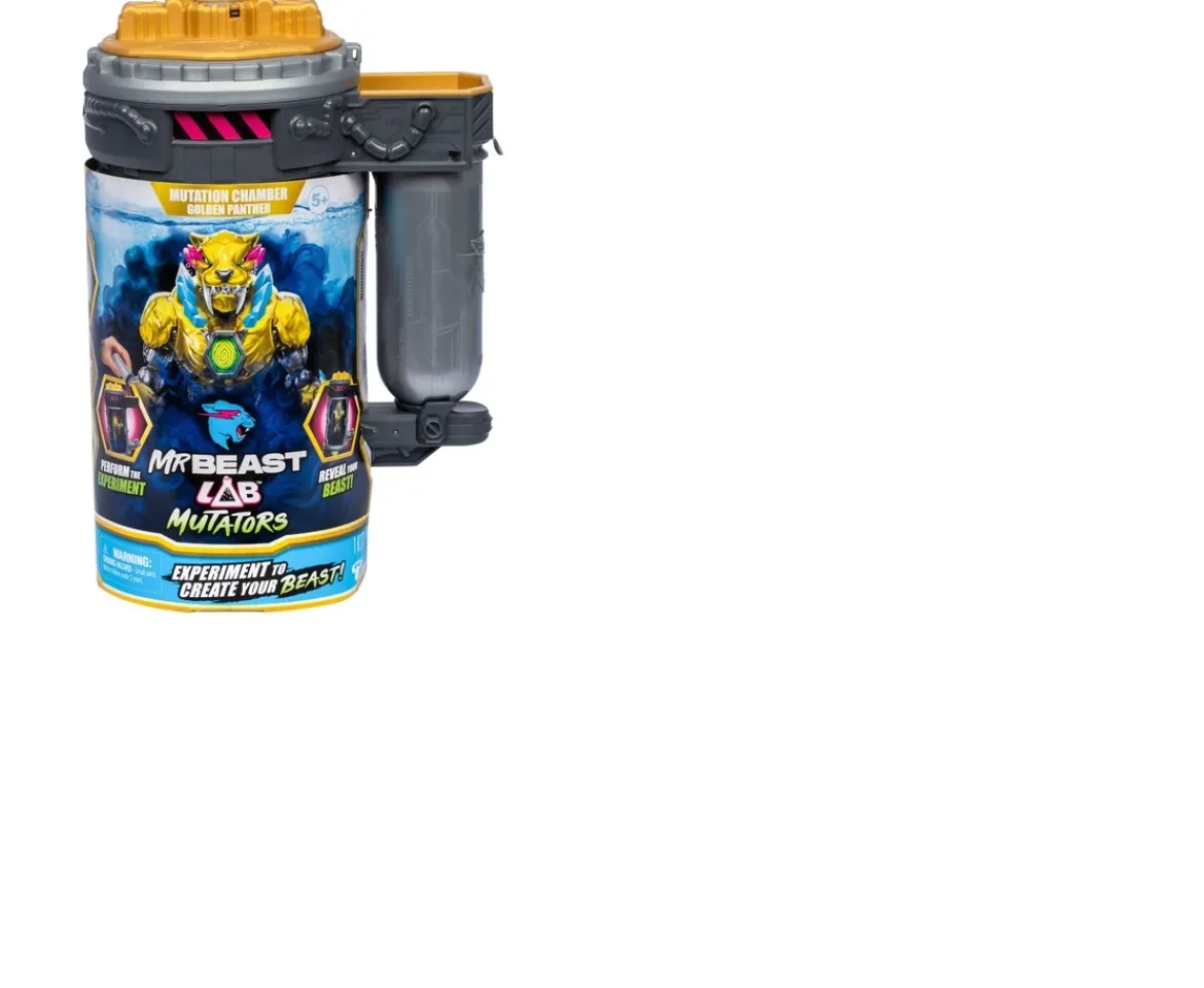 Take the thrill of experimentation to a whole new level with the MrBeast Lab Mutators: Mutation Chamber Golden Panther Action Figure. This MrBeast Lab action figure stands at 13cm tall, boasts over 20 points of articulation and is crafted to incorporate a shiny, golden finish.To create the Golden Panther, add the mutation liquid to the chamber, press the fingerprint scanner, and watch as your panther is revealed and brought to life. There are several MrBeast Lab Mutators figures to collect (each sold separately).