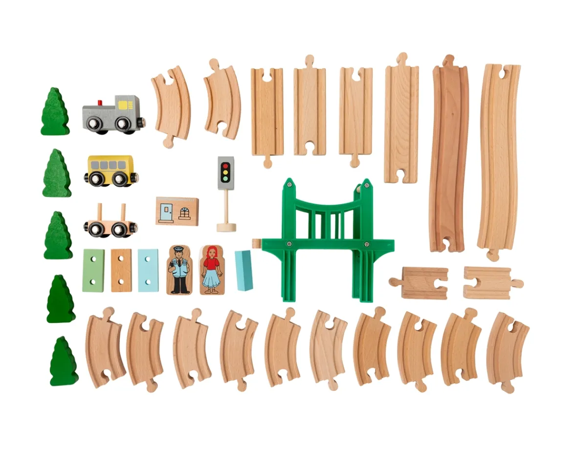 - MY FIRST RAILWAY SET – This "My First Railway" set is ideal if you are looking for a beginners wooden train set for your playful toddler. Playfully introduce your child into the world of wooden train sets.