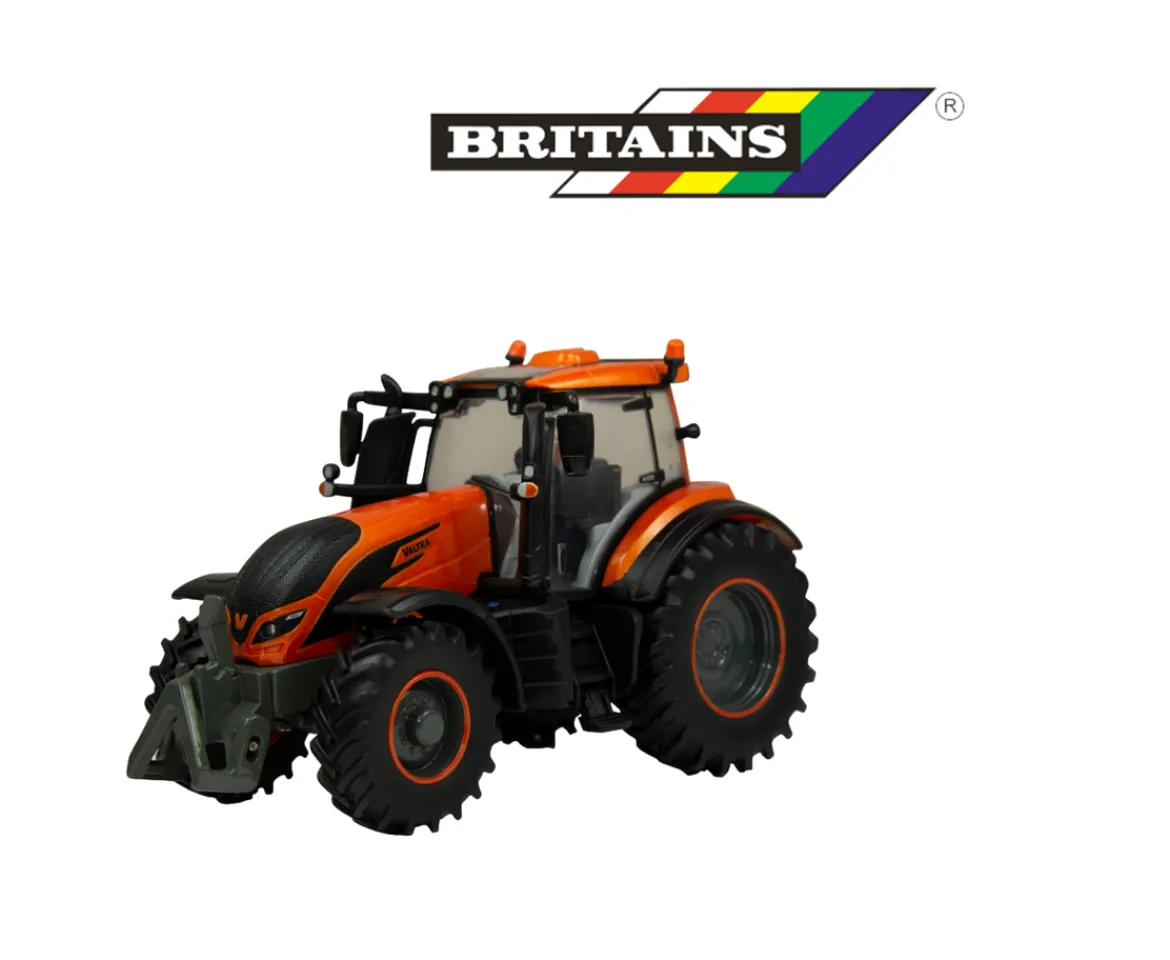 Introducing the Valtra Versu T254 model in Metallic Orange chosen from the “Valtra Unlimited” Collection. The Britains model doesn’t stint on detail: superb metallic finish replicating exactly the same colour as the real tractor, removable cab to allow you to drop in one of your sitting drivers (sold separately), working steering and an A-frame front hitch. It’s one of a range of 1:32 scale models built of die cast metal and plastic. Suitable for indoor and outdoor play, for kids and collectors aged 3+.