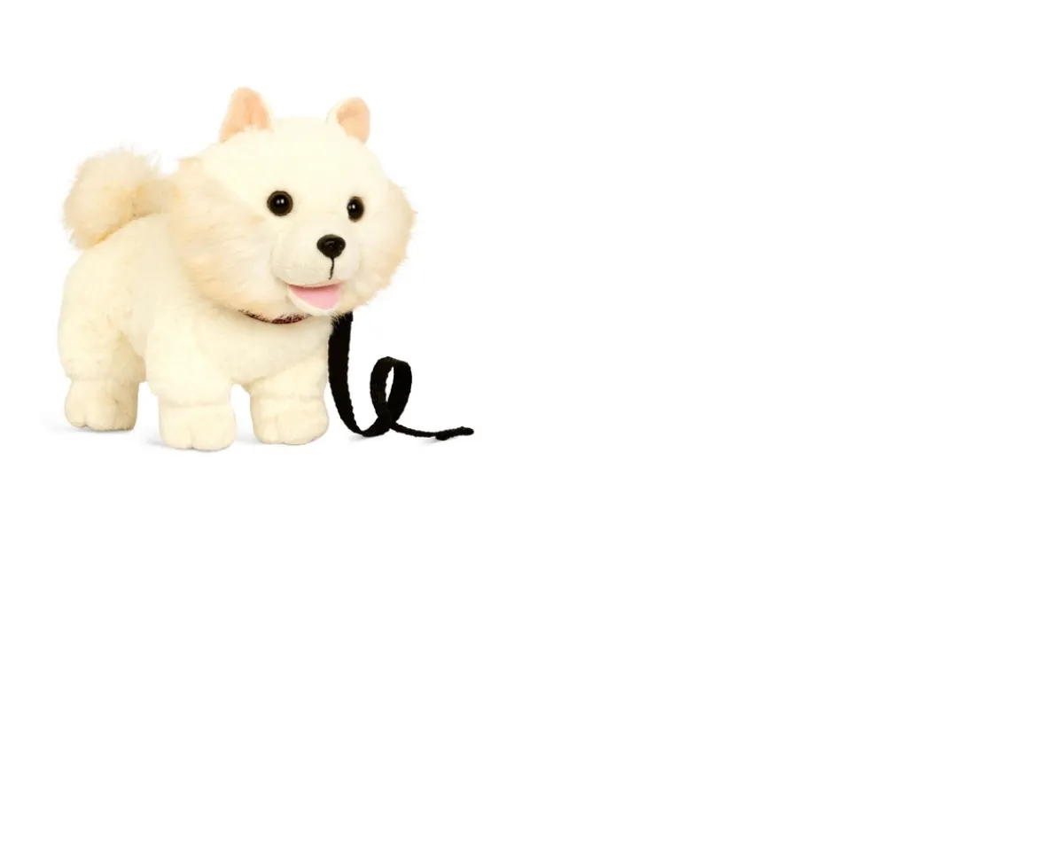 Plan an adventure for two with the 15cm Our Generation Posable Pomeranian Pup! This plush dog has posable legs, so your pup can sit, lie down, and shake a paw! The best trips always include a best furry friend. Clip the detachable leash to the collar and explore the neighborhood for fun adventures. The snuggly, blonde plush fur is super soft, and it’s just the right size to teach your dolls how to care for their pet. Days are always brighter when your favorite pets are around!