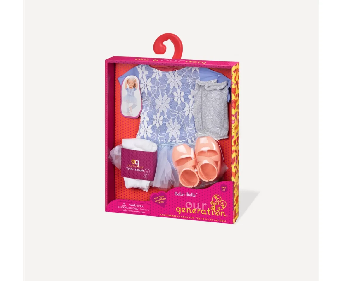 - Deluxe ballerina outfit for 18-inch dolls</li>Easy to mix and match with other Our Generation outfits</li>Includes: leotard, tutu, (2) leg warmers, tights, and ballerina shoes</li>Compatible with most 18-inch dolls</li>No batteries required</li>Dolls sold separately</li>