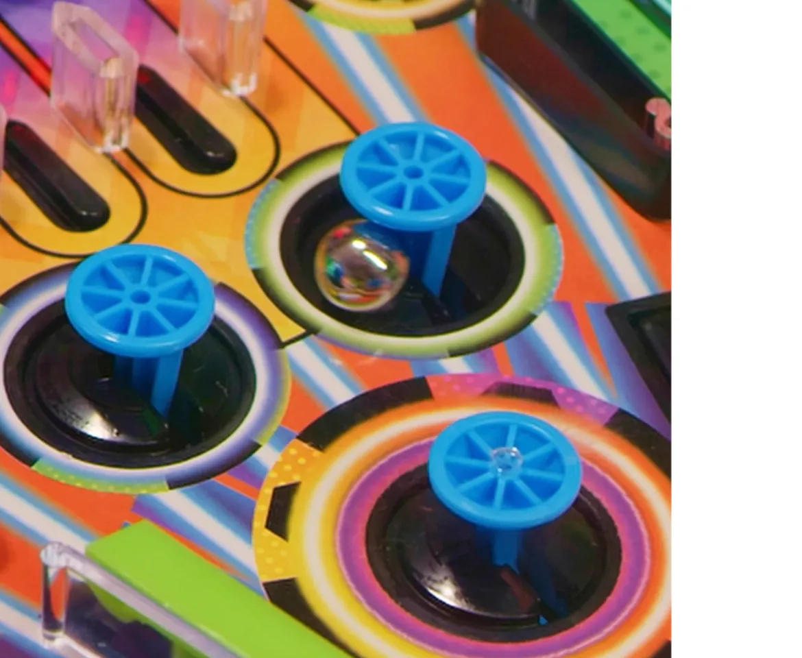 Experience the excitement of the arcade at home with Pac-Man Arcade Pro Pinball! This pinball game features the classic objective of scoring as many points as possible before losing three balls.Enjoy the nostalgic Pac-Man music while the electronic scoreboard tracks your score. Packed with ten professional-grade features, this compact pinball machine includes recessed ball launchers, light-up vibrating bumpers, and a bonus mode ball tunnel that transports you to ghost-eating action!Keep the ball in play with fast-action flippers, full perimeter LED light effects, and sound effects that enhance the fun!