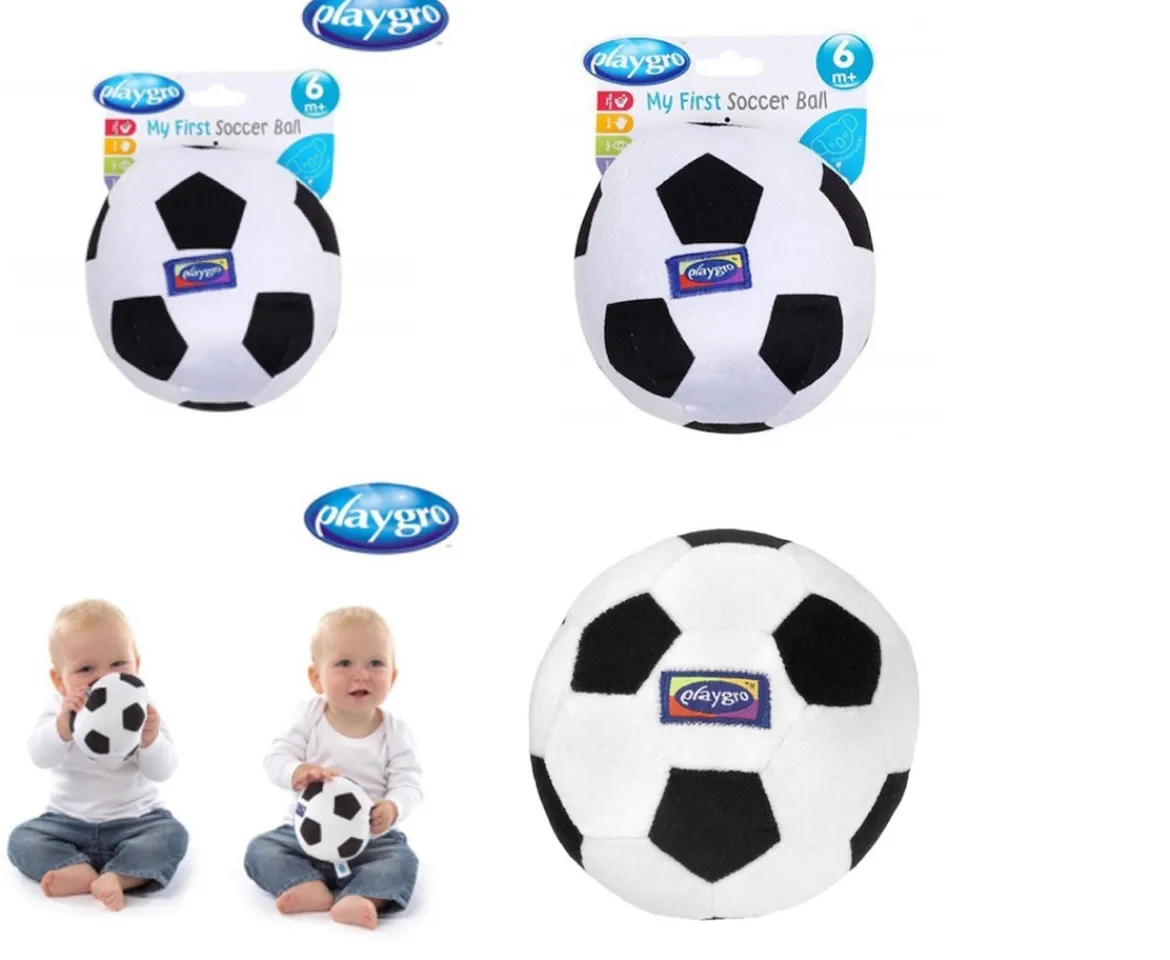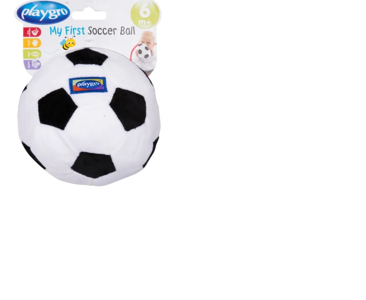 My First Soccer Ball by Playgro is perfect for your little soccer star. This black and white baby ball is sized just right for little hands. Roll the ball to hear a bell chime, encouraging baby’s gross motor skills.My First Soccer Ball by Playgro features high contrast colours and soft fabrics for visual perception and tactile development.Sensory PlaySensory play is hugely beneficial to your baby’s development. This baby sensory toy has high contrast patterns, soft fabrics and fun sounds to stimulate your baby’s senses.