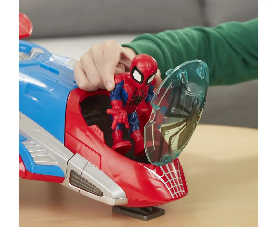 - BIG VEHICLE PLAY: The 5-inch Spider-Man action figure comes with and fits inside the cockpit of an oversized toy jet, adding to the great fun and excitement of imagining bold rescues and daring escapes