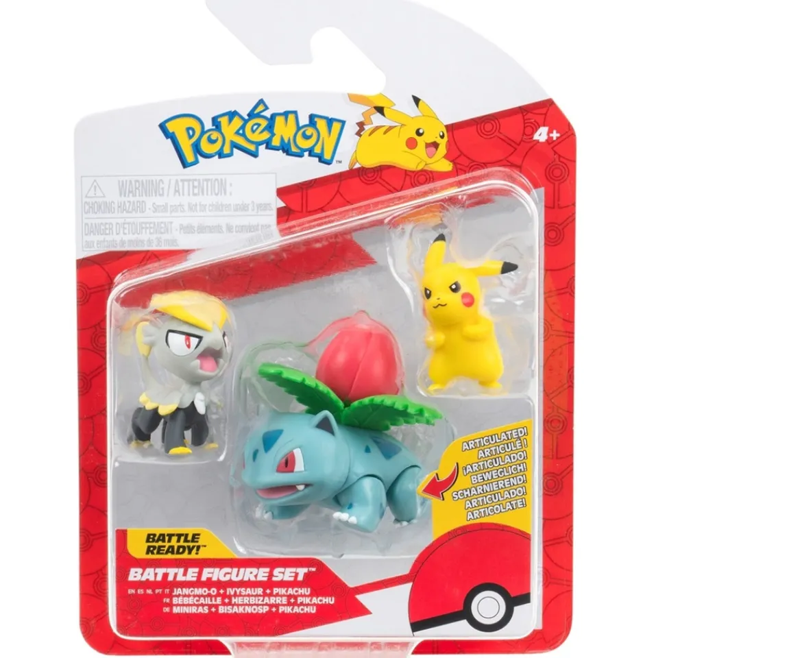 - Contents: 1x Pikachu figure, 1x Jangmo-o figure, 1x Ivysaur figure