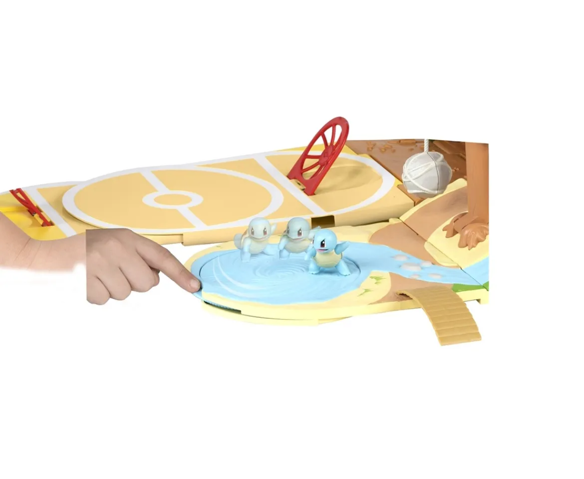 - Travel and train with the Pokémon Carry Case Battle Desert Playset. Featuring nine action zones across four desert locales, this portable playset will send your Pokémon Battle Figures on the ultimate arid adventure. Interactive environments include a Collapsible Climbing Rock, Rope Ladder, Spinning Log Bridge, Sparring Platform, Boulder Swing, and more. It also includes a 2-inch Pikachu Battle Figure to guide you on this great expedition. When you’re done, the playset neatly transforms into a backpack to bring on your next trek. Compatible with any 2-inch Pokémon Battle Figure (sold separately). Officially licensed by Jazwares. Ages 4+