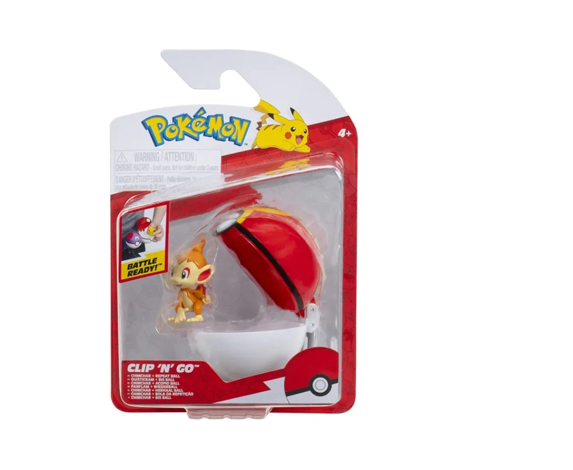 Train for battle with the Pokémon Clip ‘N’ Go. Attach your Repeat Ball to any belt or Clip ‘N’ Go Poké Ball Belt and collect Pokémon as you travel far and wide. Simply open the latch on the back of the Repeat Ball and place the included Chimchar, or any other 2-inch Pokémon Battle Figure, inside. (Clip ‘N’ Go Poké Ball Belt and additional 2-inch Battle Figures sold separately). Officially licensed Pokémon product from Jazwares. Ages 4+Includes: (1) 2-inch Chimchar Battle Figure(1) Repeat Ball Accessory
