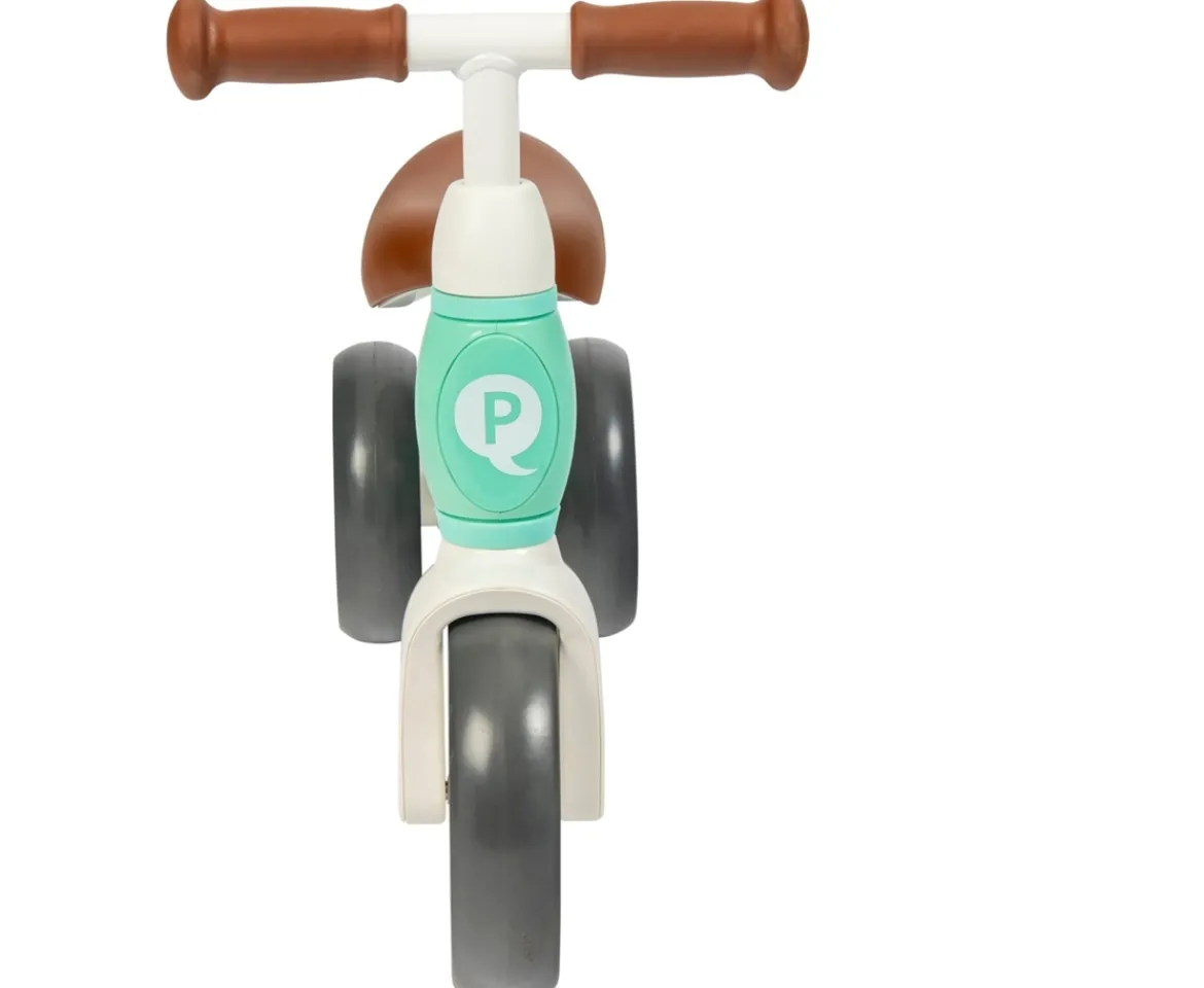 With a retro-inspired design, the Q Play Sweetie Walker Bike in Mint is a sleek 3-wheel trike, with a light frame and stable design to help little ones develop their balance during playtime! The easy-grip handles and padded seat have a vintage brown look for eye-catching style, so kids can build confidence, and create lasting playtime memories.This unique 3-wheel balance bike for kids stands out, with a 2-height handlebar and adjustable saddle to grow with kids, and a compact frame sized for travel and storage. Three large wheels help little ones develop coordination, with a mint frame for a fresh finish.