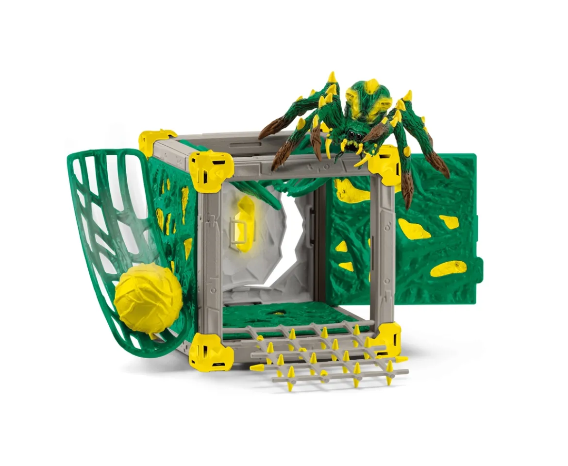 The Jungle Tarantula is a dangerous enemy to have. Its poisonous bite is feared. No wonder it was chosen to protect the World Crystal in its BattleCave! Every day, it lies in wait for the attackers and rolls over them with a big orb. It drops them down the chute right onto its enemies. And don’t even try to trick the Jungle Tarantula and enter via the roof! There’s a hidden trapdoor under the vines. If you step on it, you’ll fall right into its poisonous arms. Nasty!The Eldrador Creatures BattleCaves transform every children’s room into an action zone! Who will face the breathtaking battle? All BattleCaves can be combined (each sold separately). Scary tunnels, and tricky traps await the attackers. In the big arena they can then meet for the final duel. What a fight!
