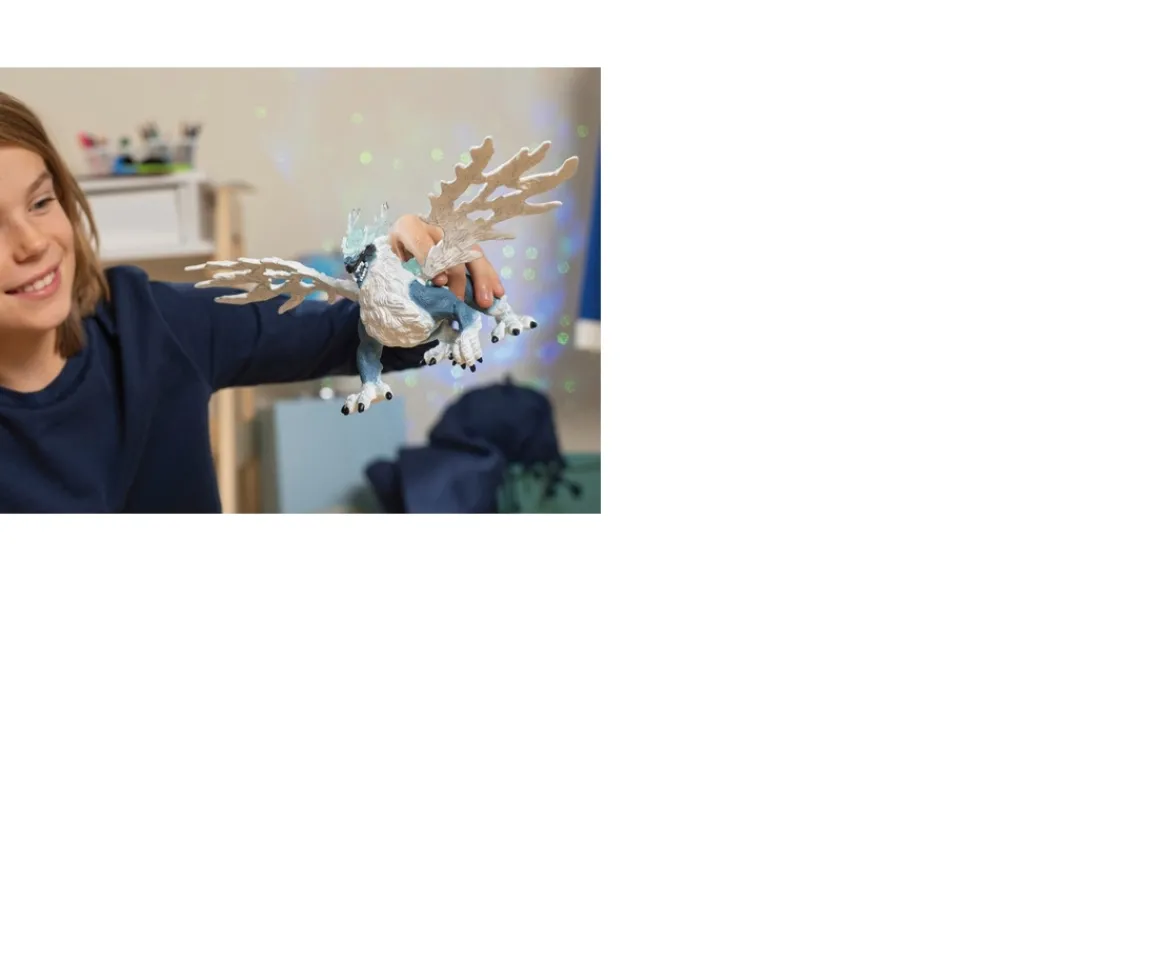 This winged schleich Eldrador 70790 Ice Dragon figure is a must-have for your schleich collection! The lizard skin of the Ice Dragon is blue, and its impressive wings shine silver.With its movable wings, you can imagine this creature performing acrobatic flying tricks: spread wide, it can sail elegantly and silently through the air. If the dragon tucks its wings close to its body, it can fly as fast as lightning, shooting towards its target.