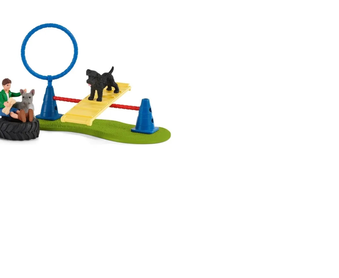 - Contents: A boy, a French bulldog, a miniature schnauzer, a bone, a tyre swing, 2 crossbars, 3 hurdles, 3 cones, a ground plate, a ring, 2 attachment clips, and an obstacle element