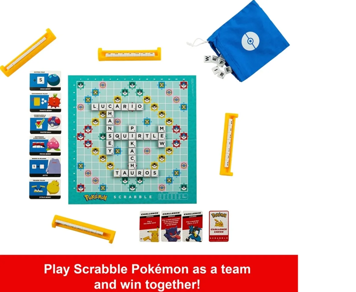 - Scrabble Pokémon provides faster, more casual, cooperative play with easy scoring