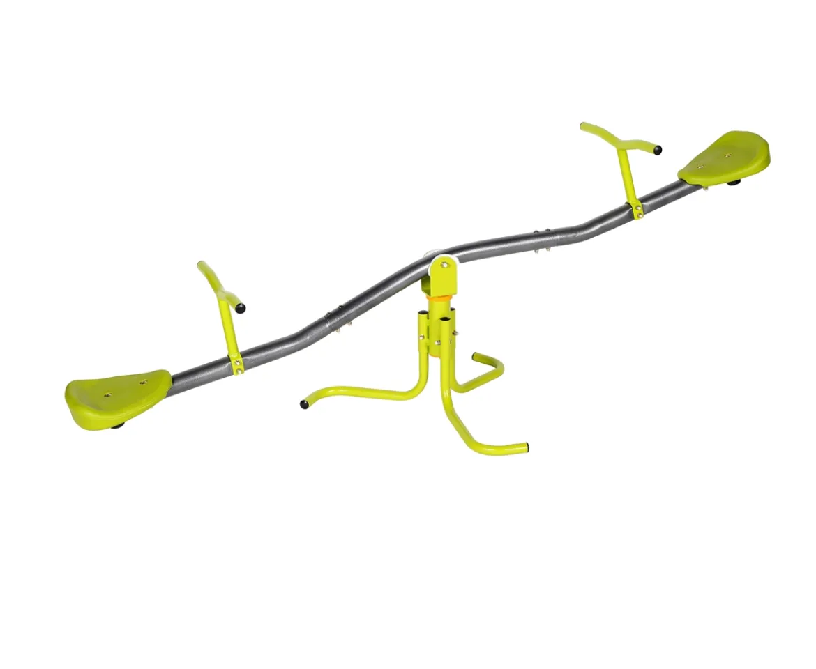 Introduce a thrilling playtime experience with our 360° Rotation Seesaw. Designed for children aged 3 to 7, this seesaw combines fun with safety, making it a perfect addition to your backyard. Made with a robust steel frame and plastic seats, featuring rust and UV protection for long-lasting use.Simple and quick to set up, allowing more time for play.Dimensions:Size: 170 x 40 x 48 cmBeam Tube Diameter: 42 mmHandle Tube Diameter: 22 mmFeet Support Tube Diameter: 22 mmAge and Weight Limitations: Suitable for children aged 3 to 7 years with a maximum weight of 35 kg per child. Not for use by children under 36 months due to small parts that could be swallowed.Adult Supervision Required: Always supervise children while they play to ensure their safety.Flat Surface Requirement: Set up on a flat surface and maintain a minimum distance of 2 meters from any obstacles or structures.Surface Recommendations: Avoid placing the seesaw on hard surfaces like concrete or asphalt to reduce injury risks.Order now and bring the excitement of a 360° Rotation Seesaw to your backyard, offering endless hours of fun and laughter for your children under safe supervision.