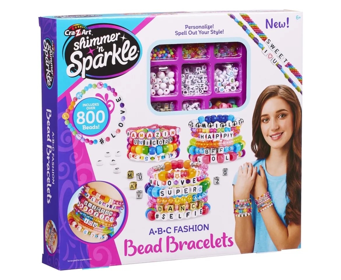ABC FASHION BEAD BRACELETS Express yourself with Shimmer N Sparkle ABC Fashion Bracelets. The totally on trend set that allows you to create cool spell and wear bracelets you can layer, wear, make and share! CREATE 2 BRACELET STYLES The set comes with brightly coloured threads to create friendship style bracelets, as well as over 700 beads to create beaded fashion bracelets! Create a whole host of spectacular wrist wear! Have so much fun creating different colour combinations for you and your friends! There are so many styles to create!PERSONALISE IT Decorate and personalise your bracelet creations with the super cool Alphabet beads included. Includes a wide variety of letter bead styles to make personalised bracelets for you and your besties. Spell out names and messages for a truly personal finished. LAYER AND WEAR Layer up different bracelet styles to create the ultimate on trend look! Mix and match friendship and beaded styles and alternate colours for a totally unique look every time! THE PERFECT PRESENT The ABC Fashion Bracelets set is the perfect present for children aged 6 and over who love making bracelet creations. They will have hours of fun creating different colour and style combinations for themselves and friends alike!