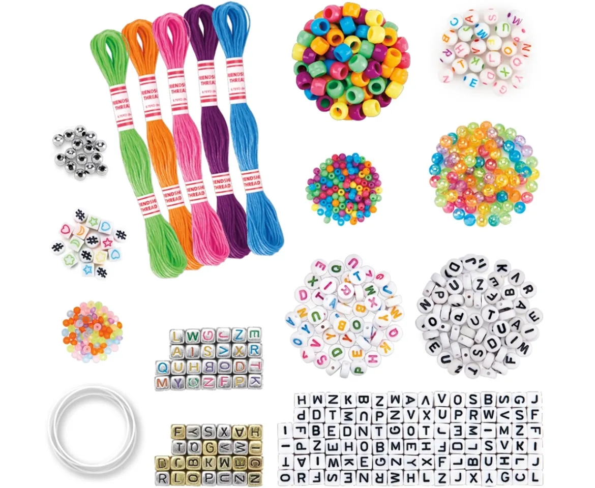 - The set comes with brightly coloured threads to create friendship style bracelets, as well as over 700 beads to create beaded fashion bracelets! Create a whole host of spectacular wrist wear! Have so much fun creating different colour combinations for you and your friends! There are so many styles to create!