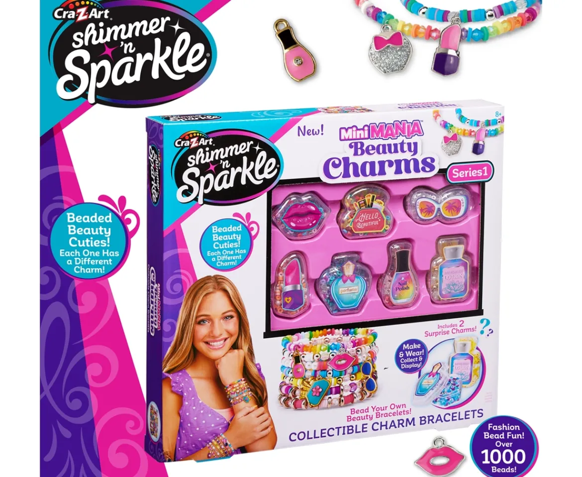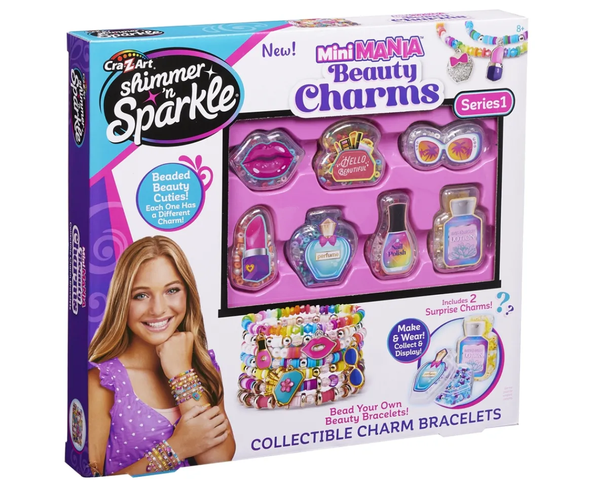 - MINI MANIA BEAUTY CHARMS Create your own beaded beauty bracelets with the Shimmer and Sparkle Mini Mania Beauty charms! Make and wear, collect and display!