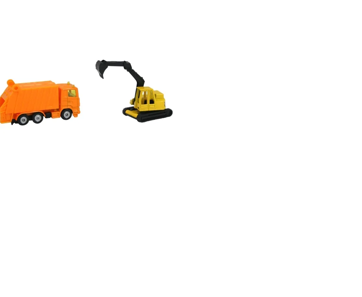 - Includes a bulldozer, skip wagon, lorry, cement mixer and a refuge truck