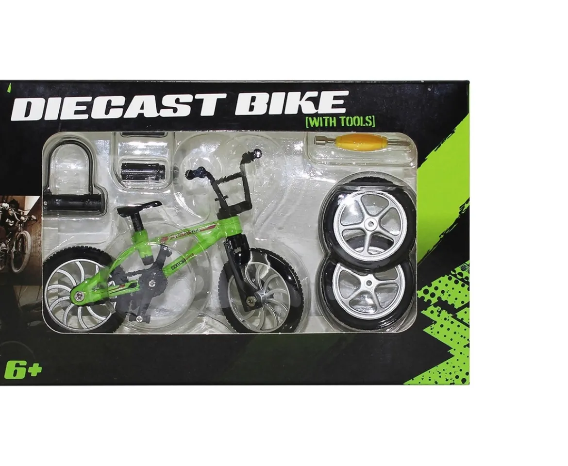 - Contents: 1x Diecast Finger Bike; 2x Spare Tyres; 1x Toolkit