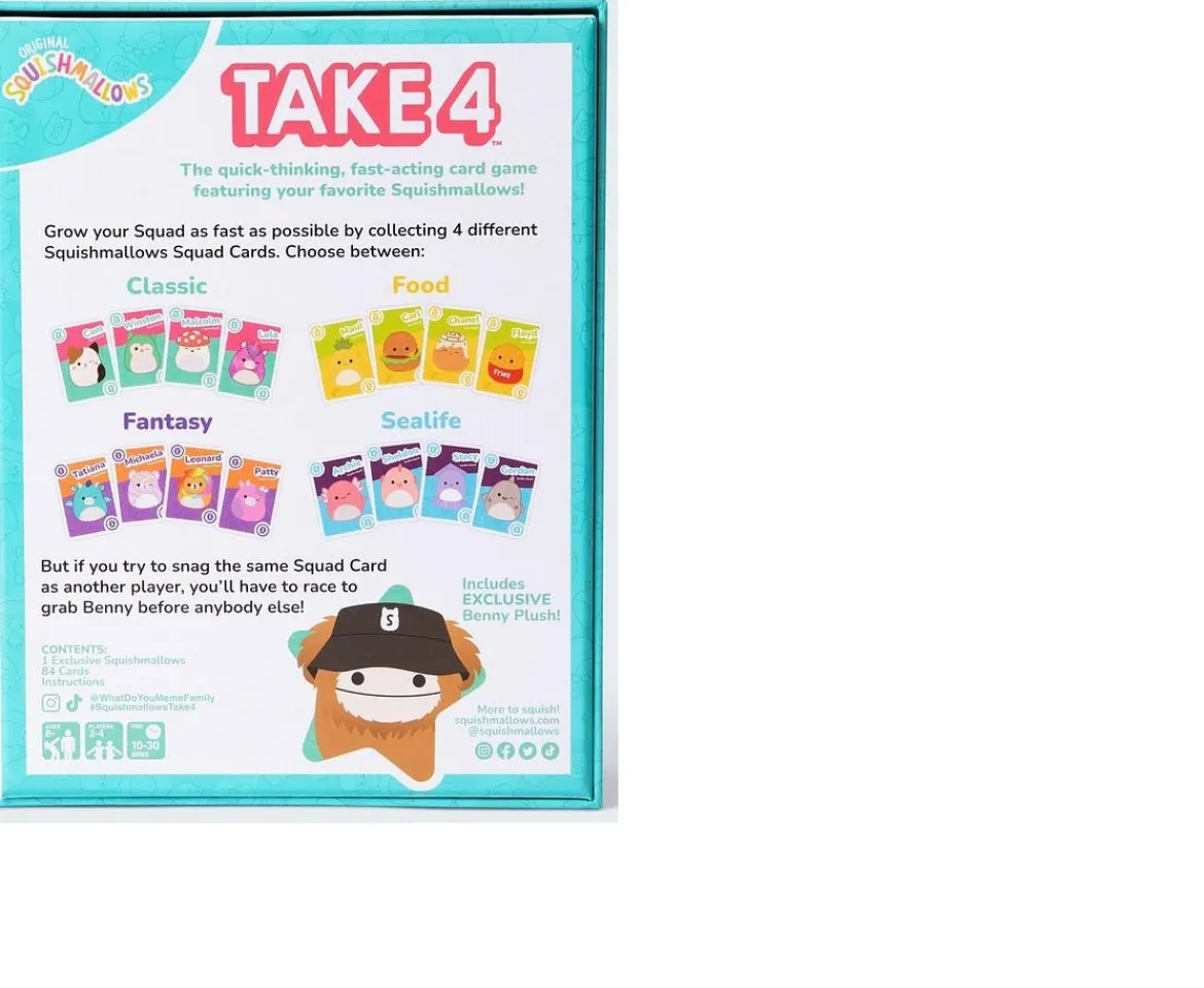 Introducing the official Squishmallows game Take 4! It’s action-packed fun for players of all ages, adults and kids alike.