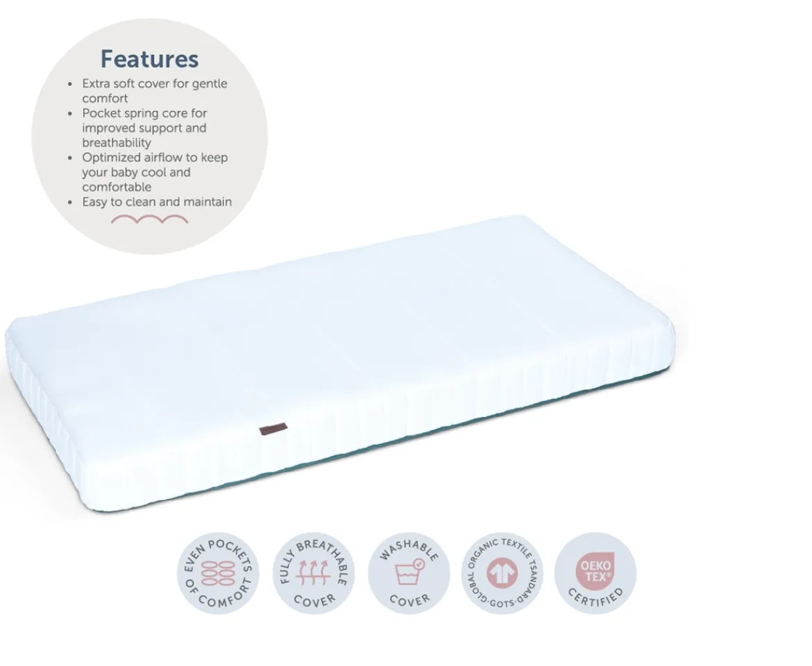 Introducing the Baby Elegance Stratus Mattress – the epitome of comfort and sustainability!This cot bed interior spring mattress is designed with your baby’s comfort in mind, featuring an extra soft polyester cover that feels gentle against their delicate skin. The breathable polyester pad core mixed with a full interior of individually coiled springs provides excellent support and airflow to keep your baby cool and comfortable all night long.