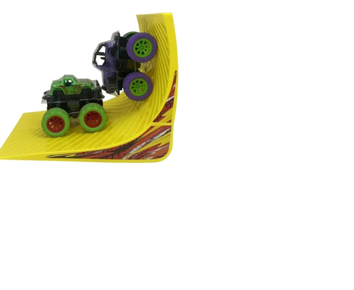 - Contents: 1 x stunt ramp, 2 x Friction cars