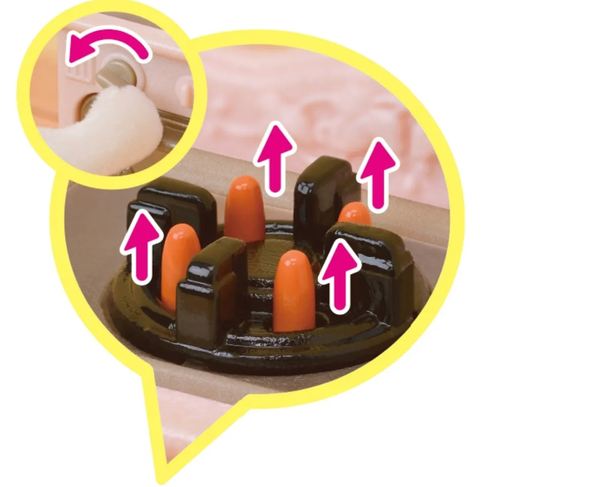 Sylvanian Families Playful Starter Furniture Set lets you turn the knob on the hob to reveal a flame. Place the apple pie or baguette on the cutting table and cut them with the knife. Place a cup in the fridge ice dispenser to make ice come out. Open the tap over the sink for “water” to come out. Pull the toilet handle to “flush”. Contents: A Chocolate Rabbit Mother, a cooker, a kitchen counter, a drawer, a fridge, a freezer compartment, a tray, a sink, a toilet, an apple pie halves, a baguette, a knife, a frying pan, a spatula, a pancake, flour, eggs, milk, an apple, 3 cups and ice.