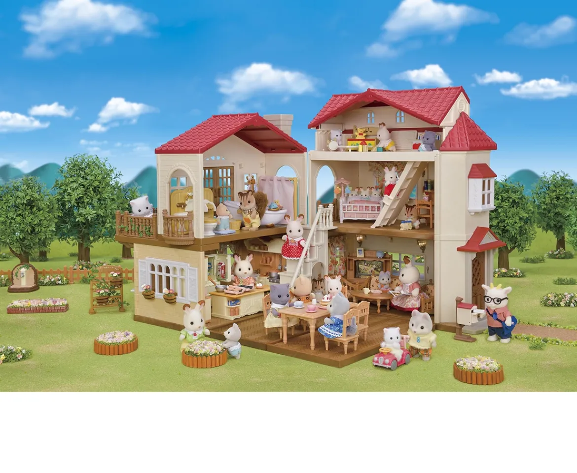 The Red Roof Country Home is a large classic house with four large rooms, and three working lights – perfect for your Sylvanians. This Sylvanian Families house features multiple configurations of rooms to choose from. The house can be opened at 90 degrees, or out as far as a full 180 degrees. The attic has a slide-out ladder.Sylvanian Families HouseThis house for your Sylvanians can be opened for play and has lamps that light up. You can change the layout of the house by removing the rooms and roof. With the attic on top (a secret playroom for the babies) the house is three storeys high.Customise Your HouseWith so many types of furniture and figures, the fun never ends. You can completely customise your Sylvanian Families’ house! Comes with a letterbox and a letter to put in it. Combine with other furniture and Sylvanians (sold separately) to act out even more stories.