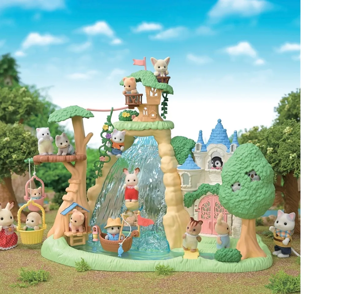 This playset features a Linnea the Husky baby, adventure gear and a Secret Forest with all kinds of fun features!The Secret Forest is full of thrilling and exciting things to see and doa big waterfall to raft down, a castle with hidden treasure, a tree house, an adventure boat and more!Set out on an adventure to search for the treasure in the Secret Forest!Includes a Husky baby dressed for adventure! With a life jacket, lantern, flag, fishing rod, explorer’s hat and more, she’s ready to go!First she needs to find the key to the treasure chest! There are lots of places to searcha bucket lift, an ivy ropeway, a tree house, a big waterfall with a cave behind it, a little secret trail, a lifting bridge and more!Turn the floor of the castle and the treasure chest will appear! Open it with the key and take out the treasure inside!Combine it with the Exciting Exploration Set -Latte Cat Brother & Baby- (sold separately) for an even more exciting adventure.Combine it with the Exciting Exploration Set -Latte Cat Brother & Baby- (sold separately) for an even more exciting adventure.