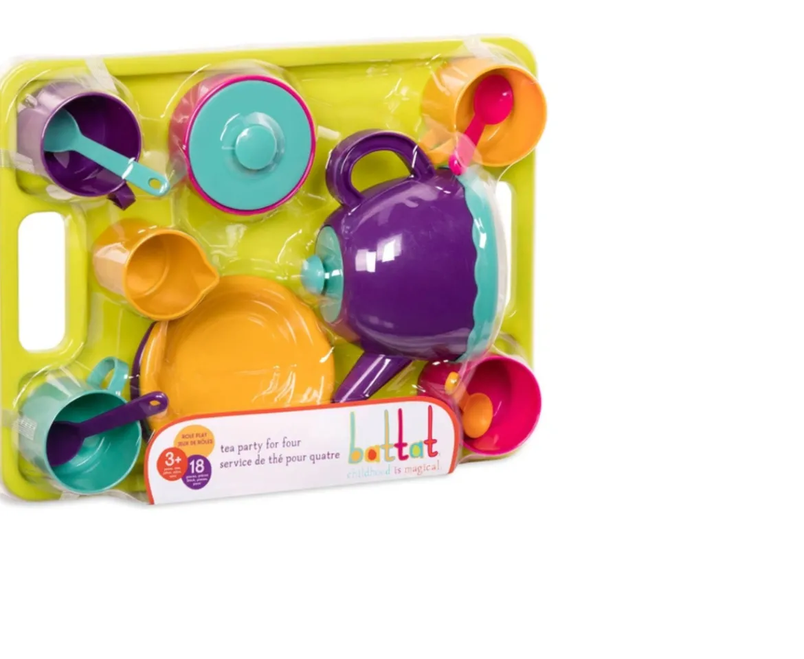 One lump of sugar, or four? There’s no limit on sugar cubes at a pretend tea party, so break out this colourful Tea Party set and get ready for a real good time. Your toddler will be crying out: ‘time for tea!’ in no time – don’t forget the cookies!Toddlers can invite their favourite stuffed animals and toys (or grown-ups) to tea and play the gracious host with a full tea set for four. This kind of role play develops essential social skills like saying ‘please’ and ‘thank you’, and serving imaginary tea helps build fine motor skills.