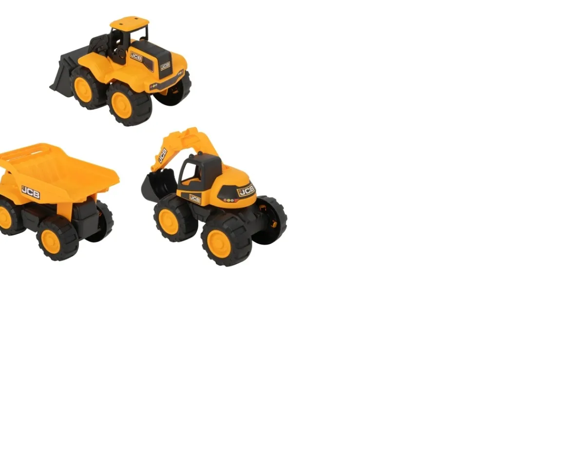 - Enjoy three iconic JCB vehicles with free moving wheels