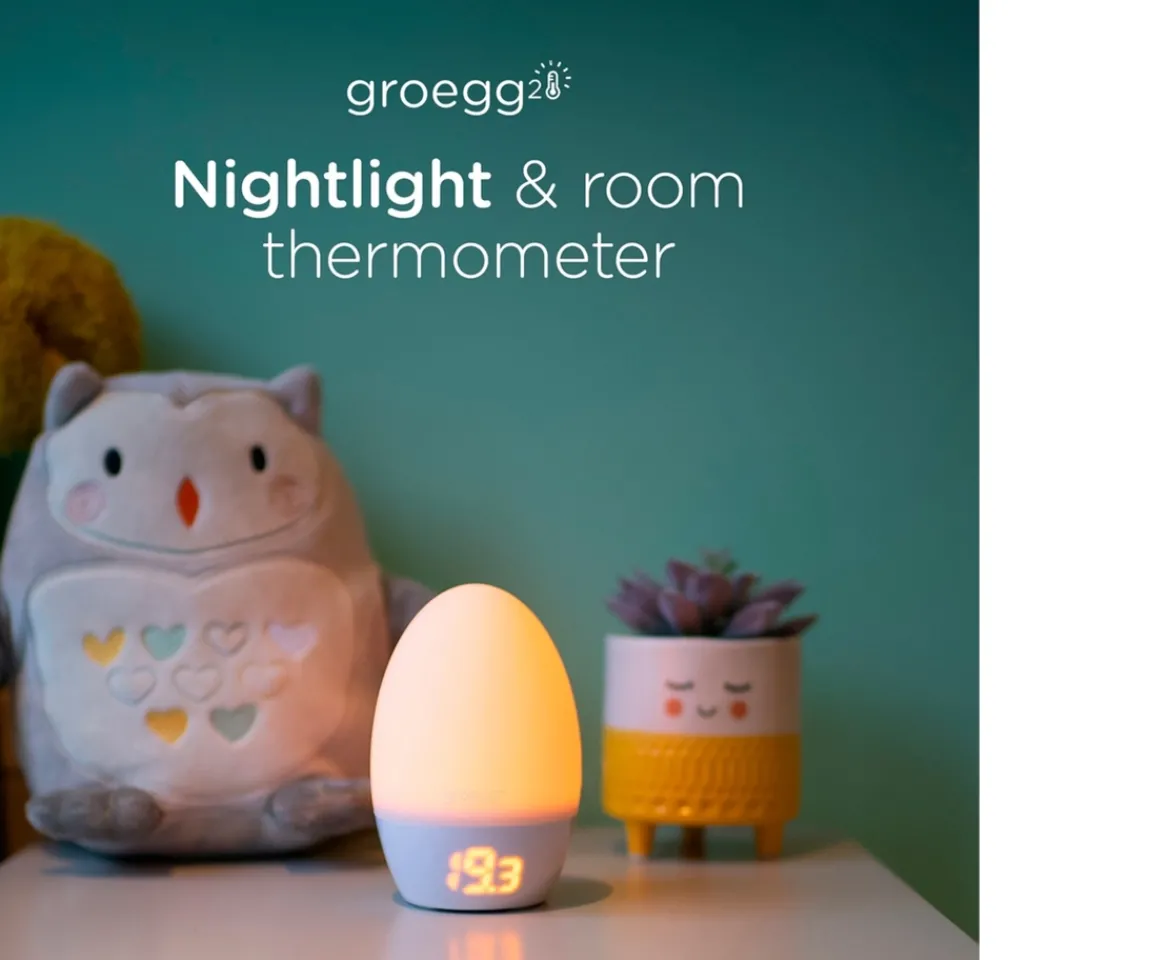 The innovative Tommee Tippee Gro Egg 2 is a thermometer and night- light all in one. The thermometer function offers peace of mind at a glance. Its a multipurpose, multifunctional monitor, to keep baby cosy in their cot.Digital temperature displayThe soft silicone dome-shaped room thermometer features a permanently lit LED display for an accurate temperature reading of the room.Create the perfect sleeping environmentThe Tommee Tippee Groo Egg2 soft-glow light helps to create a calming sleep environment and has three different brightness levels so you can adjust the intensity of the light to suit your little one.