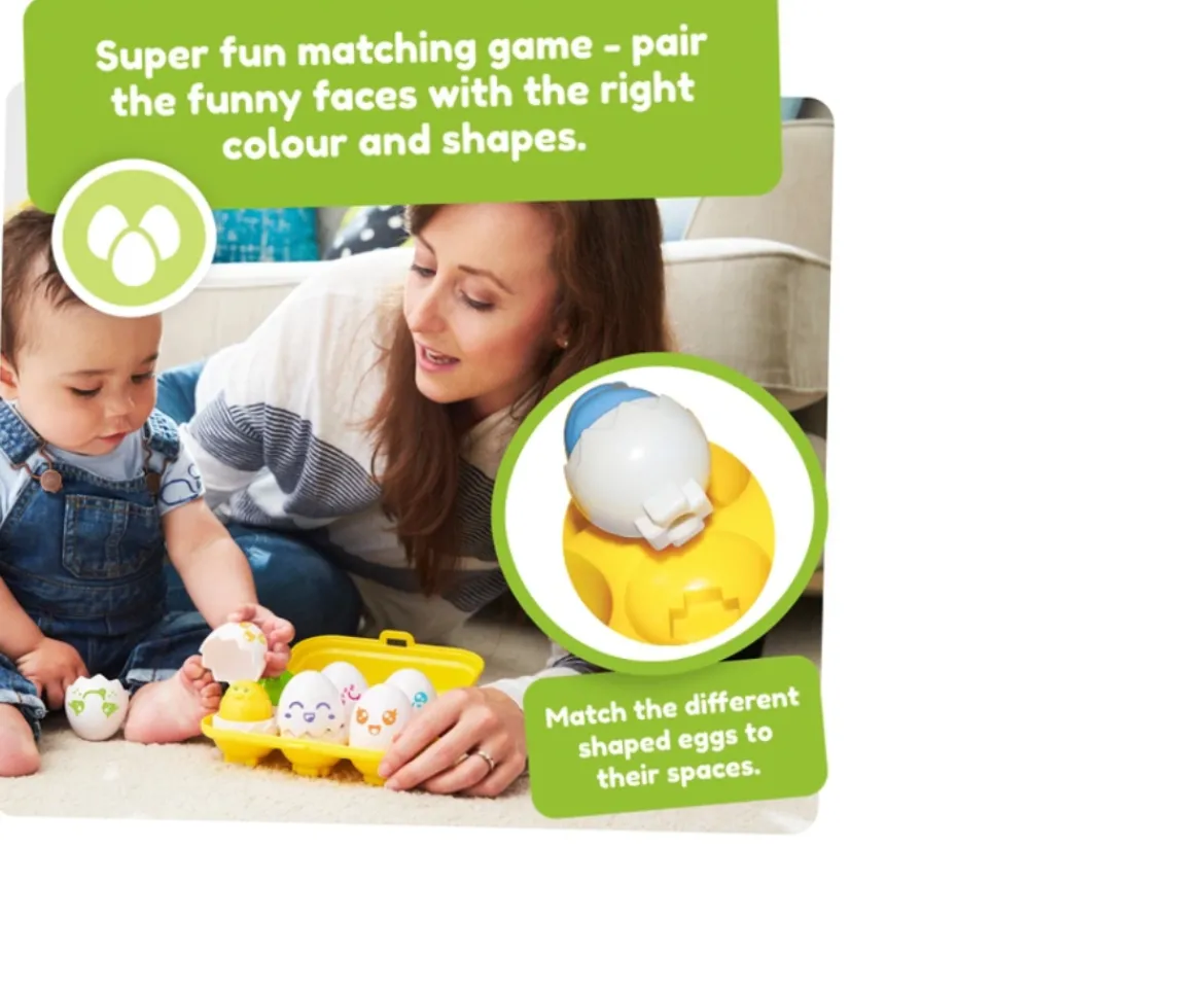 - All 6 eggs have a different facial expression and crack them open to reveal 6 matching coloured chicks inside!