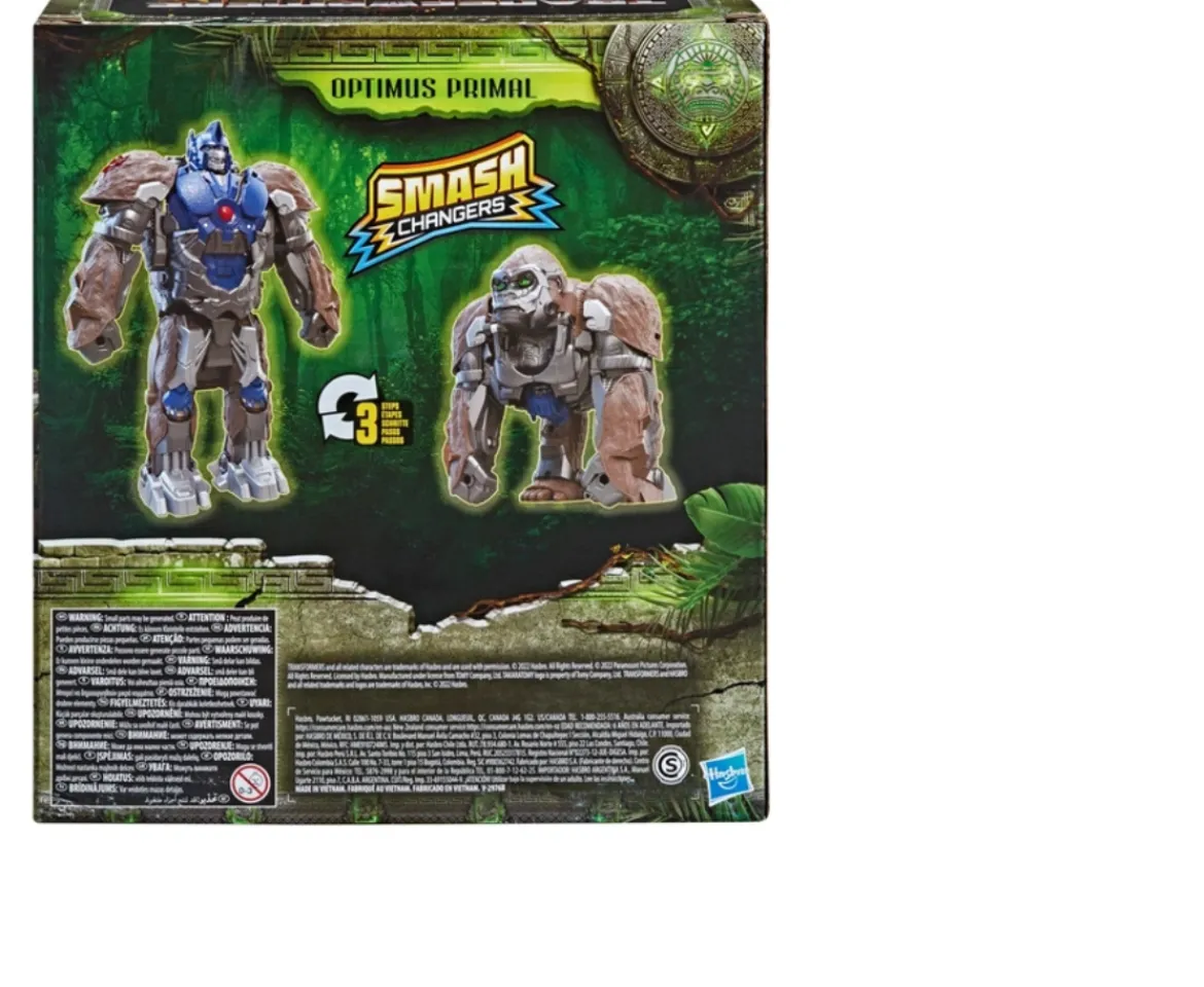 Optimus Primal, the strong Maximal leader, quickly converts to robot mode and charges onto the battlefield. Smash Changers figures are based on characters from the new Transformers movie, Transformers: Rise of the Beasts! Figures convert from alt mode to robot mode in 3 steps by smashing. (Each sold separately, subject to availability.)Optimus Primal Toys and Action FiguresThe battle on Earth is no longer between the heroic Autobots and the evil Decepticons. Transformers: Rise of the Beasts introduces mysterious factions, the Maximals, the Predacons, and the Terrorcons, in an epic 90s globetrotting adventure. Now, with your very own Optimus Primal action figure, you can take on the Transformers and take over the world.