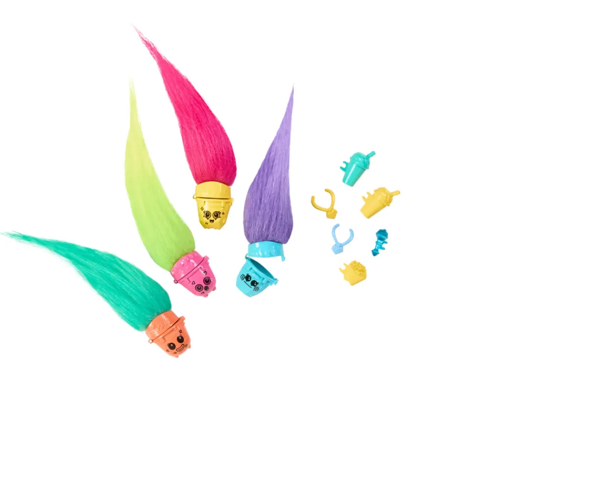 - Discover adventure with the DreamWorks Trolls™ Mount Rageous playset featuring Queen Poppy small doll! ?Inspired by the vibrant location from DreamWorks Trolls Band Together, the 2-story set features a slide, snack bar, dressing room, Hair Pops™ launcher, stage, and more! ?Kids can let their imaginations fly when they use the bridge launcher to send the 4 included Hair Pops™ into the air — slide the gem to see them go! ?Hair Pops™ can also be hidden within Poppy doll's plush hair — just pinch to pop them out for hair-raising fun! ?Hair Pops™ can open to hide and store different accessories!