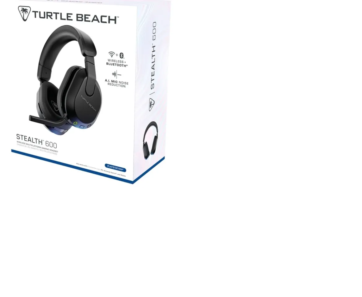 The Turtle Beach® Stealth™ 600 wireless multiplatform gaming headset for PS5™ & PS4™, Windows PCs, Nintendo Switch™, Steam Deck™ and mobile is refreshed and powered up for a third generation of gaming domination. With a history atop the wireless console headset charts, the Stealth™ 600 enters its 3rd Generation, but is just getting started. Experience low-latency wireless connectivity on any console & PC, plus built-in Bluetooth® lets you connect directly to mobile devices. Plus, switching between 2.4GHz wireless and Bluetooth® connections is made easy using the QuickSwitch button located conveniently on the headset. Be unstoppable with a best-in-class, 80- hour battery life featuring quick charge so you can get back in the game right away.Completely redesigned for the Stealth™ 600, the all-new uni- directional, flip-to-mute microphone features A.I. noise reduction to ensure ultra-clear mic quality with the quietest background possible. Using the Swarm™ II desktop software for PC, or mobile app for iOS & Android devices, you can turn on/off the A.I. mic noise reduction, adjust noise gate, sensitivity, monitoring levels, and choose from four different mic presets, or even make your own with a custom 10- band microphone EQ. Clear comms are nothing if you can’t hear every vital game detail, so the Stealth™ 600 is packed with the legendary 50mm Nanoclear™ drivers for precise, immersive spatial audio quality. And with the Swarm™ II app, you can cycle through four audio EQ presets, create up to five custom presets with a 10-band EQ, adjust game & chat volume mix, plus activate, or adjust Turtle Beach® exclusive Advanced Superhuman Hearing® sound setting.Play for hours in total comfort with a pressure-relieving, ultra- comfortable design. Memory foam ear cushions wrapped in athletic-weave fabric keep your ears cool and cozy over extended game sessions. Plus, the cushions feature ProSpecs™ glasses relief technology, so whether you wear gaming or prescription glasses, you’ll enjoy the same great comfort. For added customization, you can remap the secondary wheel & mode button on the headset to distinct functions to better suit your gameplay. And the Stealth™ 600 is built for long-lasting, comfortable use with an adjustable lay-flat design.Variable Mic MonitoringAvoid shouting thanks to mic monitoring (or sidetone) which allows you to hear your voice through the headset and adjust monitoring levels on-the-fly with on-ear controls or in the Swarm™ II app.Non-Stop ComfortWinning never felt so good with a pressure relieving cushioned headband paired with memory foam, glasses-friendly ear cushions, wrapped in soft athletic weave fabric.Lay-Flat, Adjustable DesignDesigned for comfort, adjustability and durability, the Stealth™ 600 features an adjustable design that lays flat when not in use.