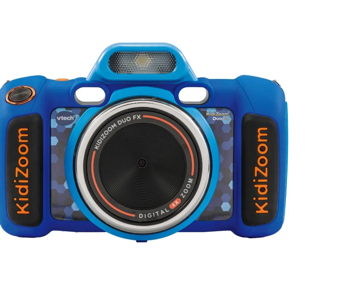 Start snapping pictures with the VTech KidiZoom Duo FX Camera in bright blue! Featuring a 2.4 inch LCD screen, this dual camera is perfect for taking videos, selfies, and group shots!Have fun with the Cartoon Me effects, Puppet Show mode, and My Avatar Creation for silly effects and live filters! Also includes over 20 fun games and activities for endless entertainment.Get creative and edit your photos with the built-in photo editor and play around with 75 voice and video effects, filters and frames! Bring the camera on all your adventures and travels, using the hand strap to keep it safe and secure and test out the zoom controls and capture amazing panoramic photos!Features a Micro-USB port for computer data transfer. Expand your storage with a microSD card (not included).