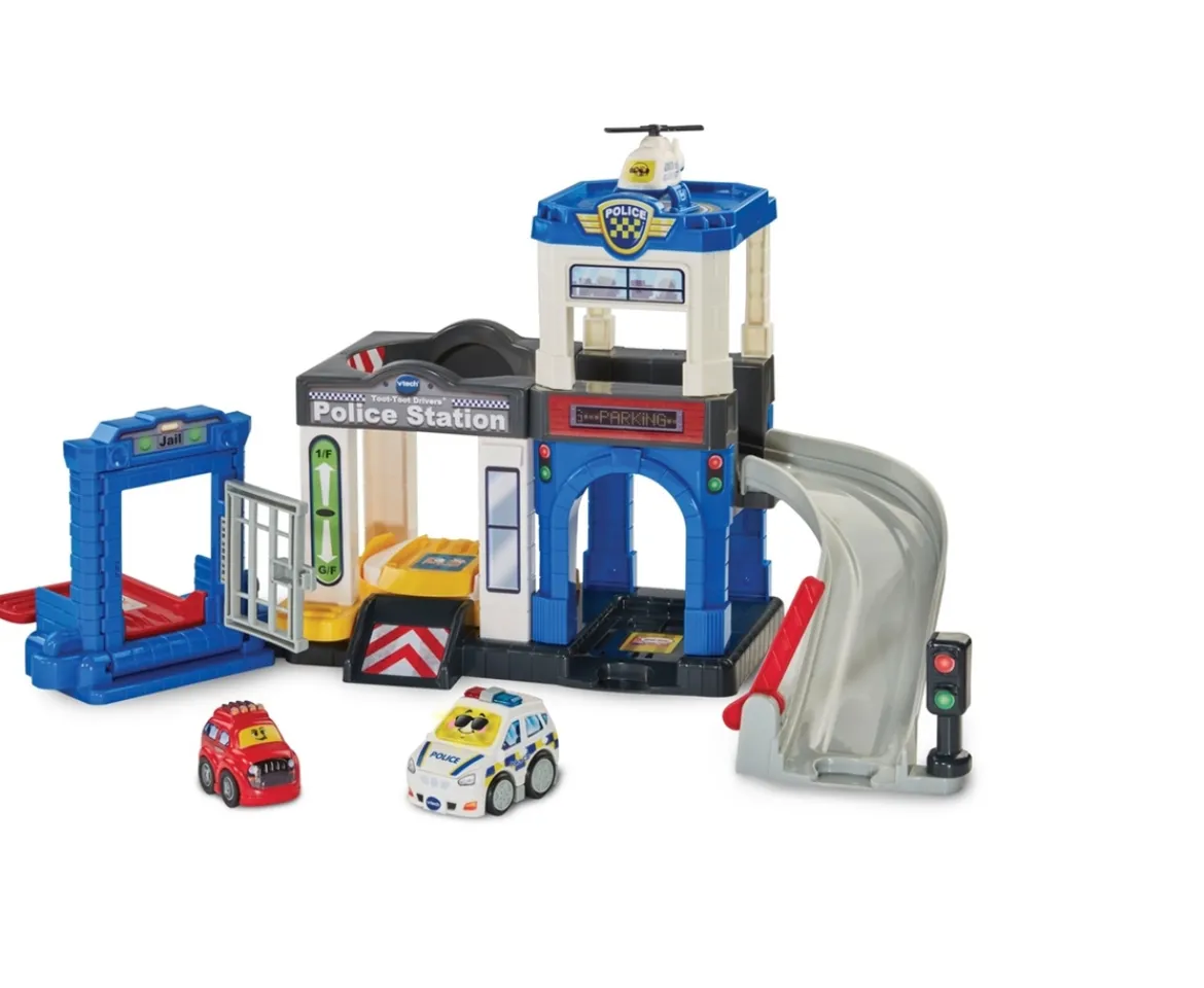 - Contents: 1x VTech Toot-Toot Drivers Police Station Playset, 1x SmartPoint Police Car, 1x mini car, 1x mini helicopter & 1x instructions