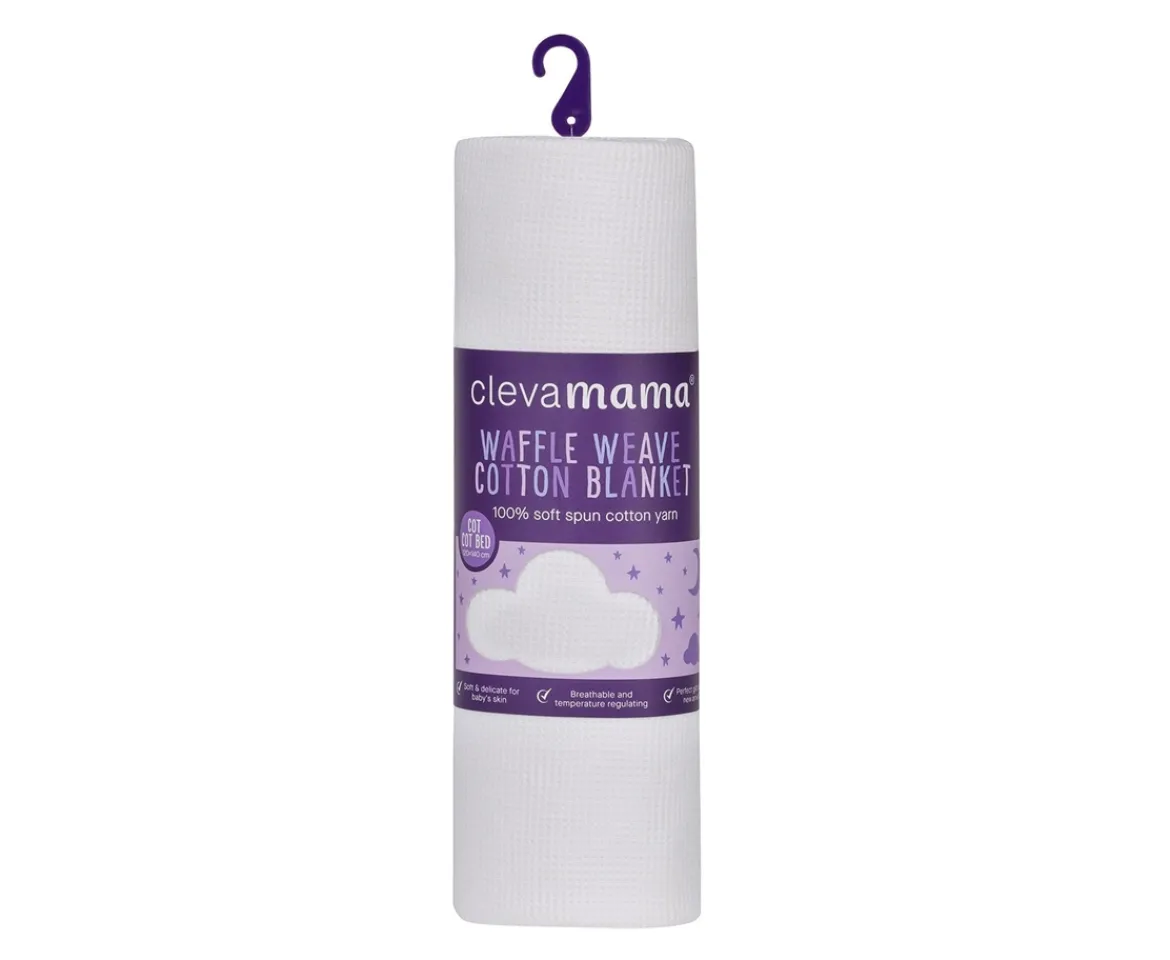 The ClevaMama® Waffle Weave Cotton Baby Blanket is a must-have bedding item for all parents. Our Cot or Cot Bed Blanket is 100% cotton, designed to provide snuggly warmth while at the same time ensuring greater breathability. The Waffle Weave design and dimensional texture, which is thick, yet light and airy, is useful in all seasons and climates so this blanket is ideal for whether you are at home or out and about.ClevaMama® Waffle Weave Cotton Blanket is available in a range of soft colours as coral, blue and white to suit any nursery.This cotton baby blanket is suitable for babies from 0 months+.The ClevaMama® Waffle Weave Cotton Baby Blanket is available in 2 sizes: 70×90 cm for crib or Moses basket and 120×140 cm for cot or cot bed. Suitable for babies from 0 months+.