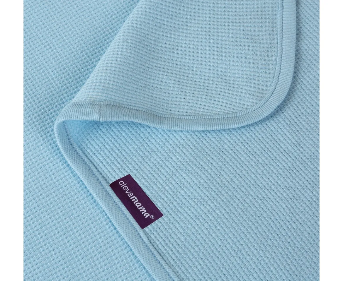 The ClevaMama® Waffle Weave Cotton Baby Blanket is a must-have bedding item for all parents. Our Cot or Cot Bed Blanket is 100% cotton, designed to provide snuggly warmth while at the same time ensuring greater breathability. The Waffle Weave design and dimensional texture, which is thick, yet light and airy, is useful in all seasons and climates so this blanket is ideal for whether you are at home or out and about.ClevaMama® Waffle Weave Cotton Blanket is available in a range of soft colours as coral, blue and white to suit any nursery.This cotton baby blanket is suitable for babies from 0 months+.The ClevaMama® Waffle Weave Cotton Baby Blanket is available in 2 sizes: 70×90 cm for crib or Moses basket and 120×140 cm for cot or cot bed. Suitable for babies from 0 months+.