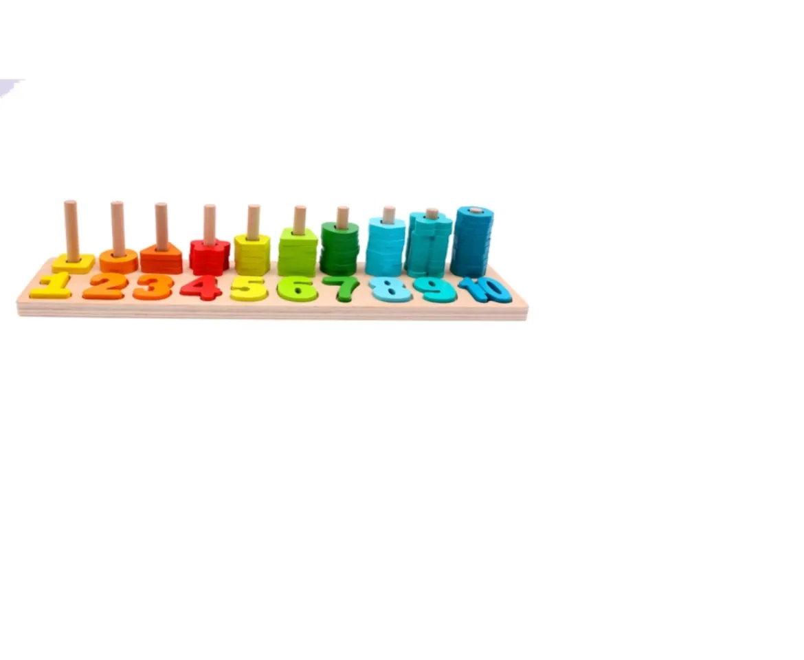 Explore numbers, shapes and colours with the Squirrel Play Wooden Counting Stacking Set. This classic wooden toy for kids comes with differently shaped disk shapes for little ones to sort by number on the sturdy wooden base.Let your little one keep busy at playtime, learn how to count to 10 & recognise different colours. With the Squirrel Play Wooden Counting Stacking Set, matching and sorting are just child’s play!